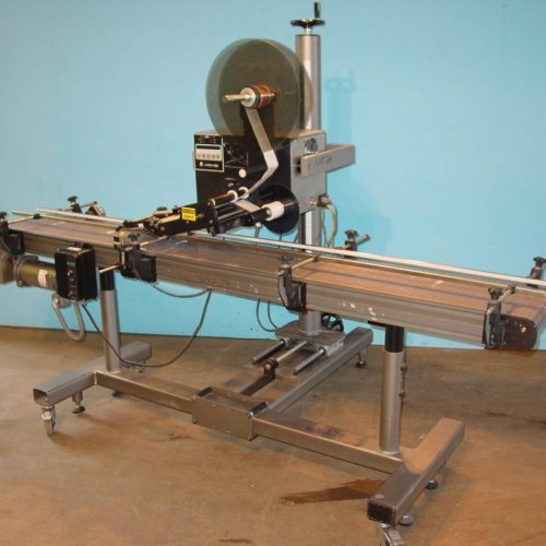 Label Aire Model 2115CDL wipe on Pressure Sensitive labeler Mounted on Conveyor