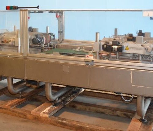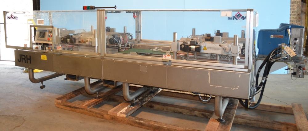 Langen Imball Model CombiSJRHVADXLQ High Speed Continuous Motion and Highly Flexible Tri Fold Carton Sealer For Cartons with Lids. Maximum Capacity 150 CPM. Complete with Nordson Pro Blue 10 Hot Melt Glue Sealer, Approx Size Range - 100 - 400 mm Wide, 35 - 150 mm High, 100-250 mm Wide, Complete with Allen Bradley Panelview Plus 700 Touch Screen Control, Top Foldown Glue Station, 90 Degree Re-Orientation Station and Side Folding Glue System, Complete with (6) Nozzles, S/S Frame, 50 Hz 400 volt