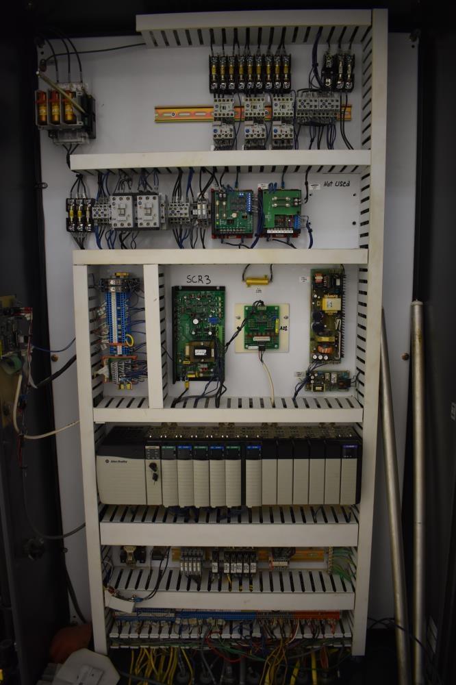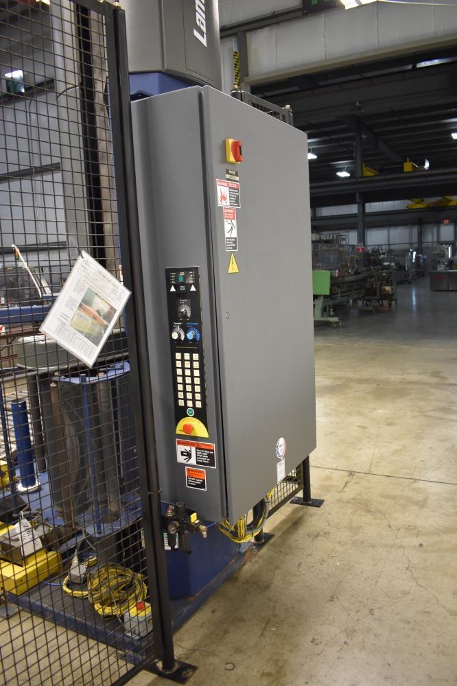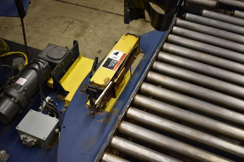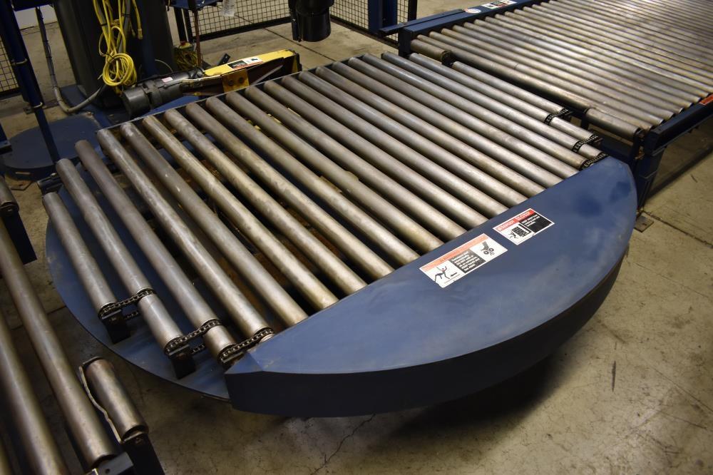 Lantech Model Q1000 Automatic Pallet Stretch Wrapper. Machine is capable of speeds up to 60 loads per hour (depending on film and pallet size). Has a maximum load capacity of up to 4,000 pounds. Can handle a load size range of: 36 inches to 54 inches (width); 36 inches to 48 inches (length); and 24 inches to 92 inches (height). Has automatic pallet infeed and discharge conveyors. Has an 84 inches (diameter) heavy duty automatic turntable. Turntable has a 4,000 pound load capacity. Maximum roll dimensions: 10 inches (diameter) by 20 inches (width). Uses a reach arm with impulse (hot wire) film cutting and film wipe down system. 3/60/460.