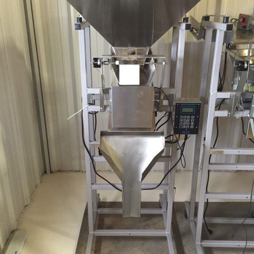 Logical Machines Model S-4 Net Weight Filler with 304 S/S Contact Parts, Self-Adjusting Controller Range up to 10 pounds, Read Out to 1 gram, 3 1/2 cu ft Supply Hopper, and Fill Capacity of up to 800 Fills per Hour. Handles All Dry Bulk from Powders to Large Items, Can be Used with All Bags and Rigid Containers, and Automatic Tare Adjustment.