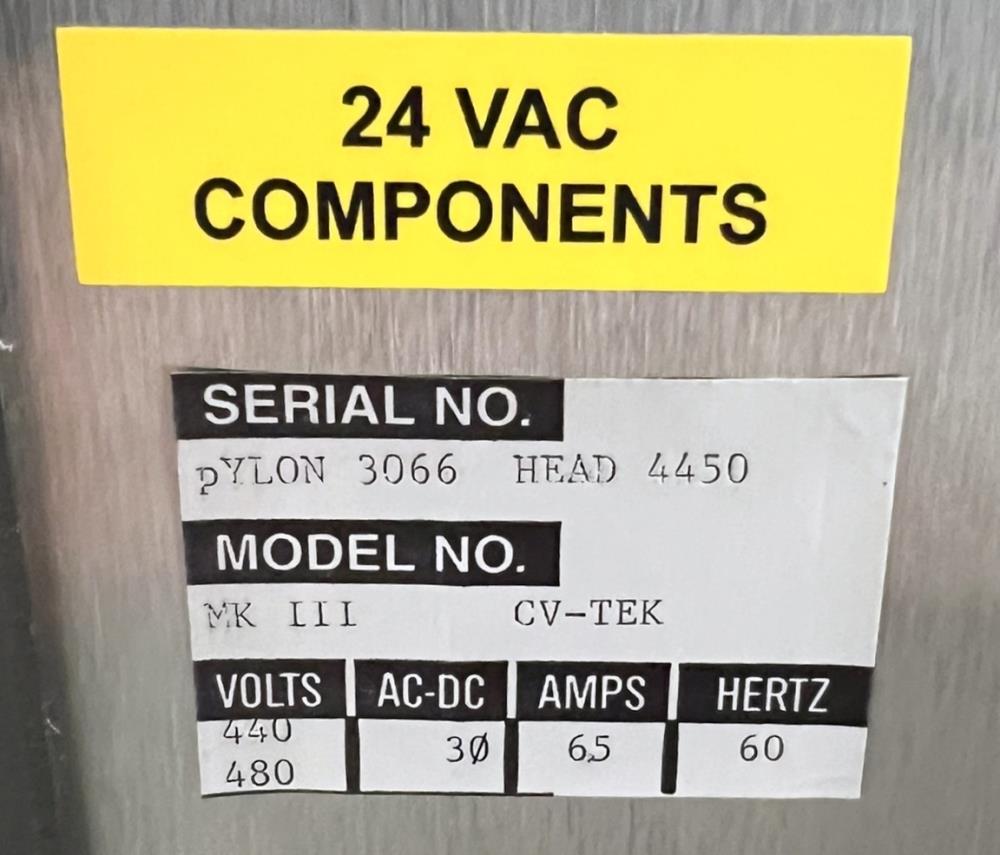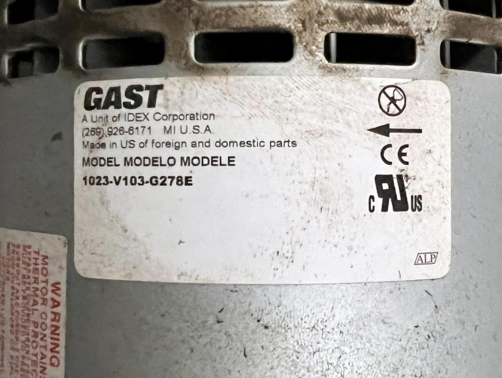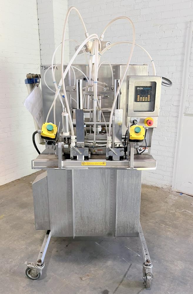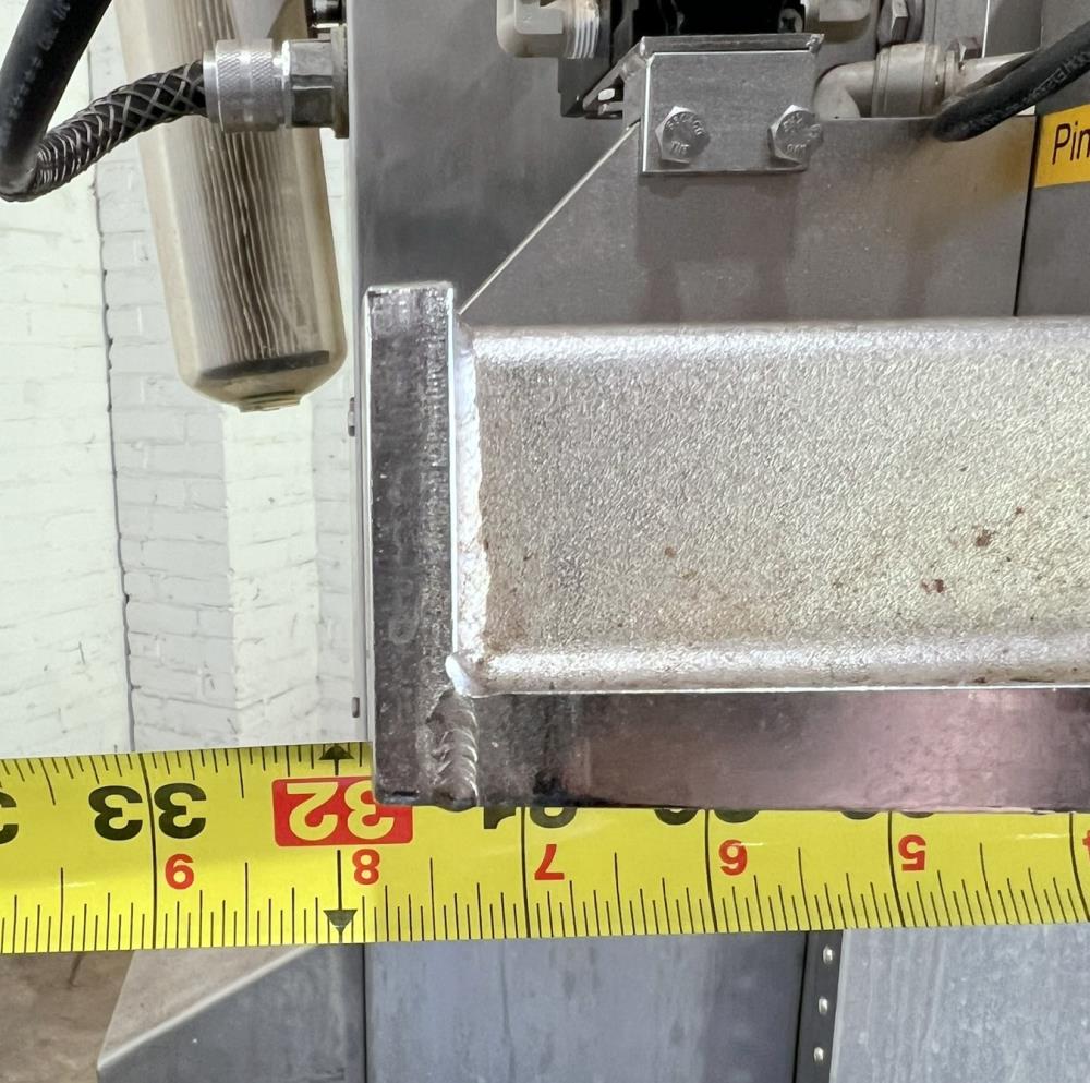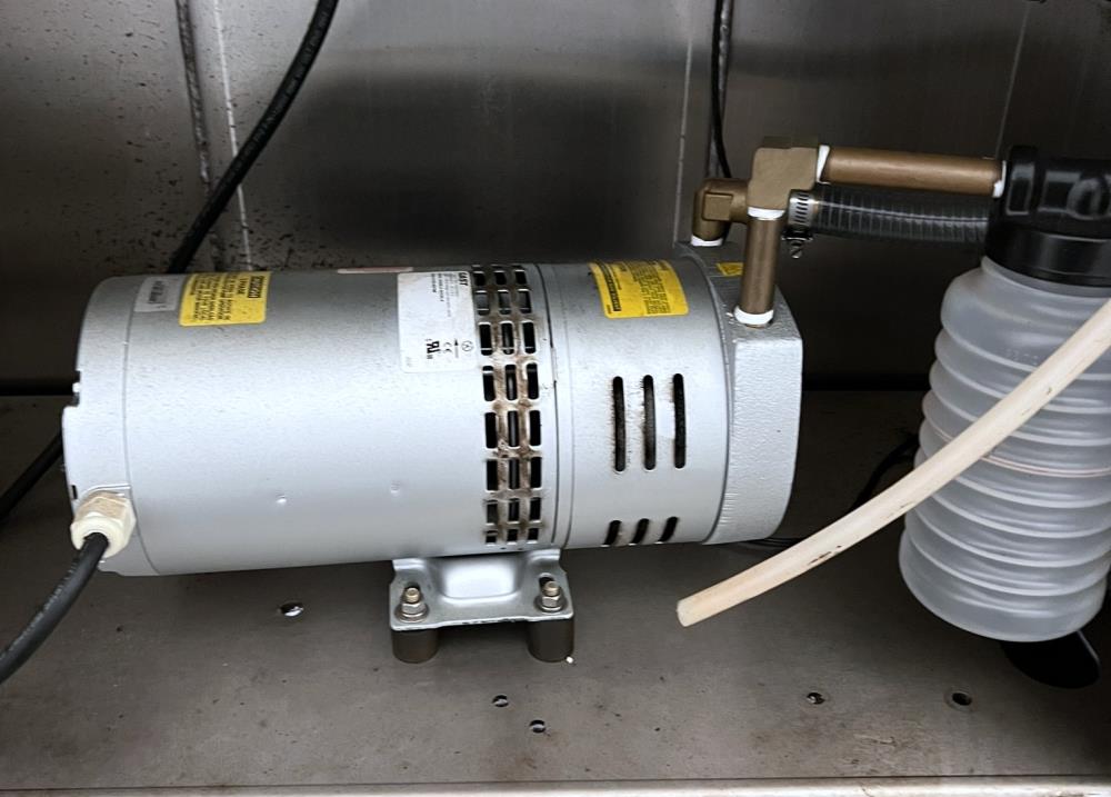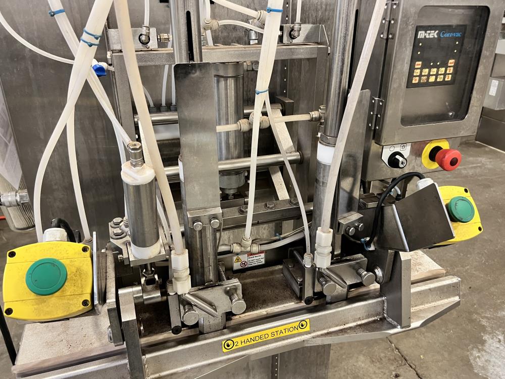 M-Tek Corr-Vac Vacuum Sealer, Model MK III. Approximate 30″ wide seal area. M-Tek controller. Gast model 1023-V103-G278E vacuum pump. Two hand control. Mounted on casters.