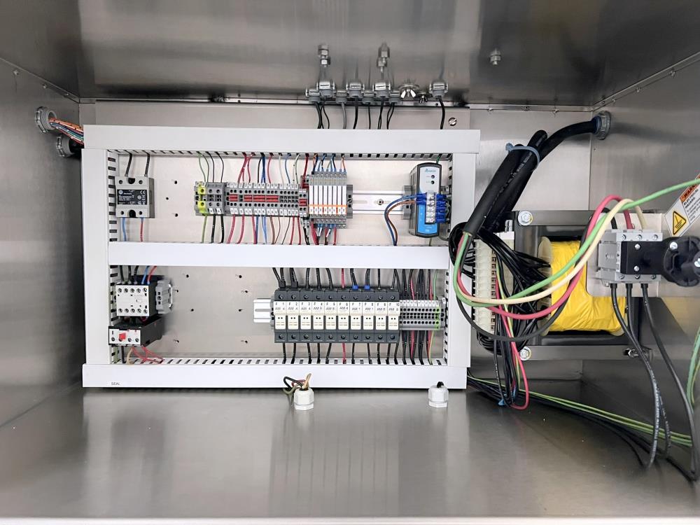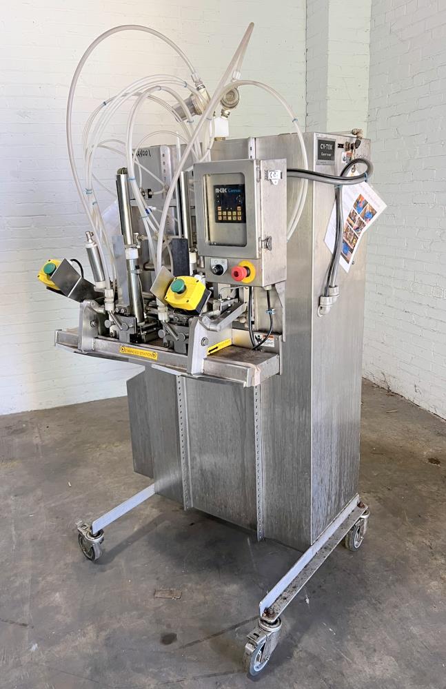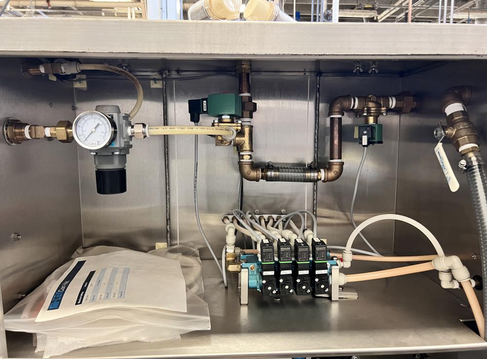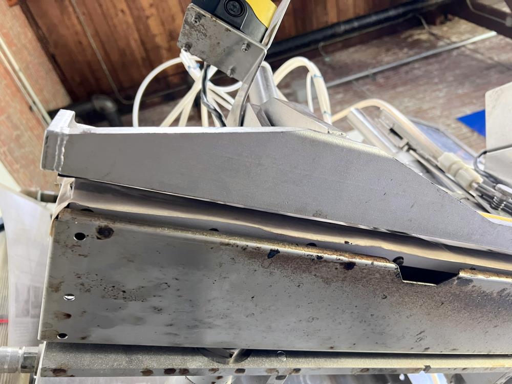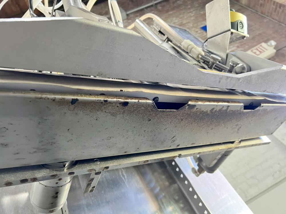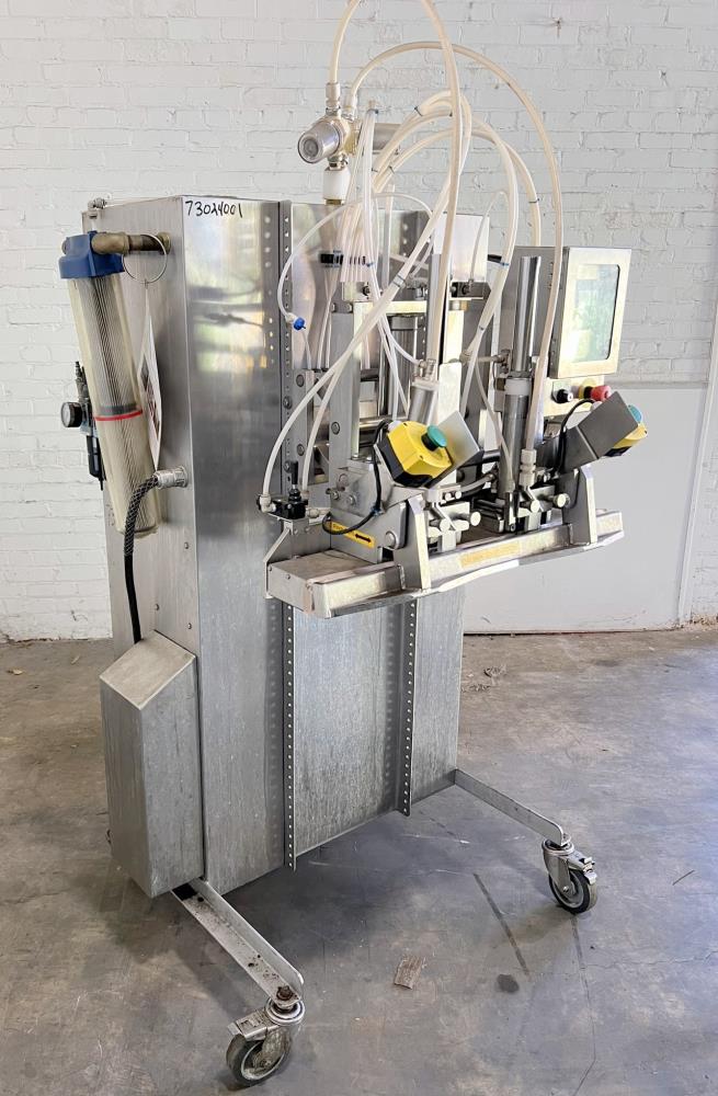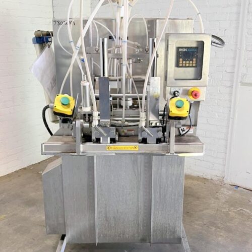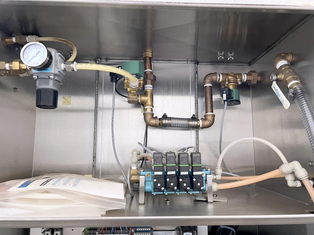 M-Tek Corr-Vac Vacuum Sealer, Model MK III. Approximate 30″ wide seal area. M-Tek controller. Gast model 1023-V103-G278E vacuum pump. Two hand control. Mounted on casters.