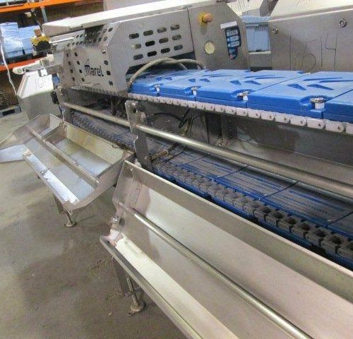 Marel Model TSM2C165 Profiler Slicer and Portioner for Poultry to Specific Size or Weight. Stainless steel Construction, Rate is 70 Portions Per Minute. 28 Molds, 156 in Conveyor Length