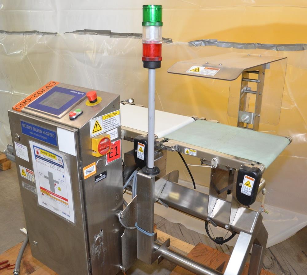 Mettler Toledo Hi Speed Model Beltweigh XC S/S (3) Belt Check Weigher. Weight Range From 20 grams to 6,000 grams. Minimum Package Length50 mm. Maximum Package Length 350 mm. Maximum Package Rate 211 PPM (depending on package). Maximum Package Height 225 mm. Accuracy +/- 1 g depending on package. Resolution 0.1 g. Minimum Belt Speed 50 FPM, Maximum Belt Speed 330 FPM. Air Blast Reject. 11 3/4 in W x 16 in L Belts.