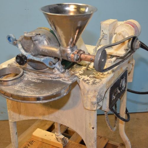 Mikro Pulverizer Model CF S/S Bantam Pulverizer Mill. 3 in Diameter Rotor with (6) 1 1/4 in L Swing Hammers. 7 1/2 in Diameter x 6 1/2 in Deep S/S Feed Hopper, 7 1/2 in x 2 in Oval Discharge, Mounted on Portable Frame with Casters, Belt Driven Auger with 1/2 HP Drive, 3/4 HP Main Drive, 115 V, 1 Ph, 60 Hz.