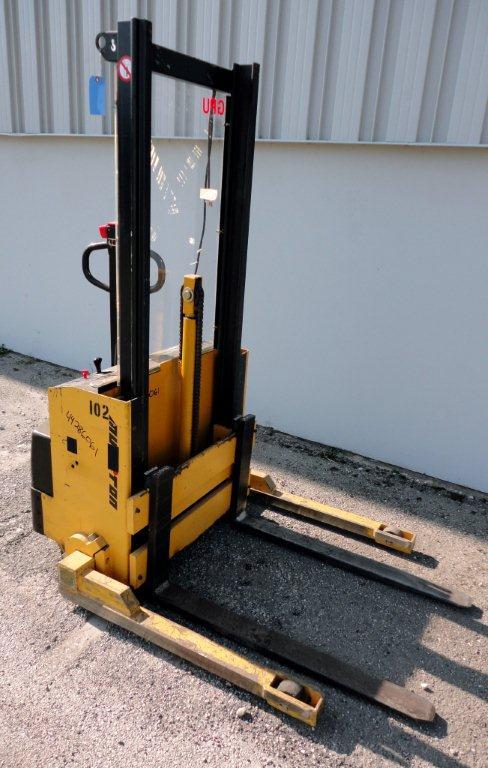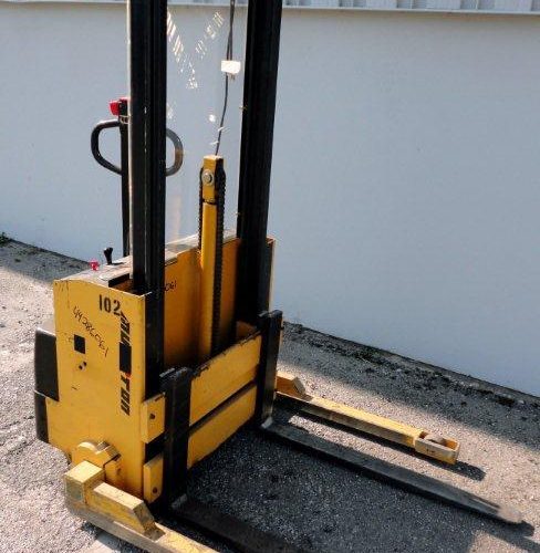 Multition MCI Model SW2063 2,000 Pound Capacity Electric Walk Behind Pallet Stacker with 24 Volt Battery, Maximum Lift Height 63 in, Load Center 24 in, Adjustable Forks, 1870 Hours.