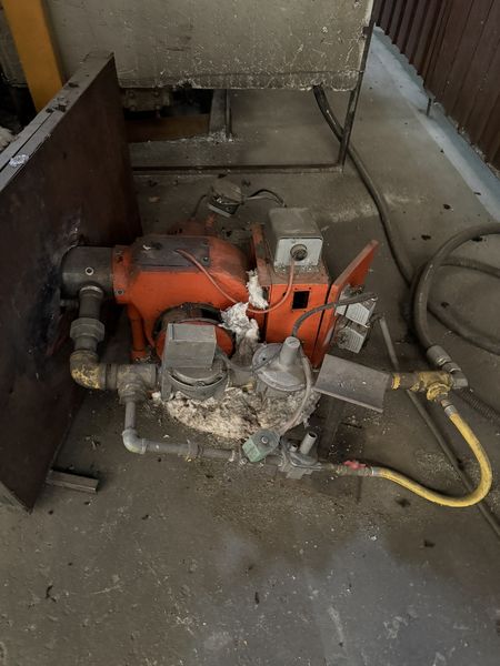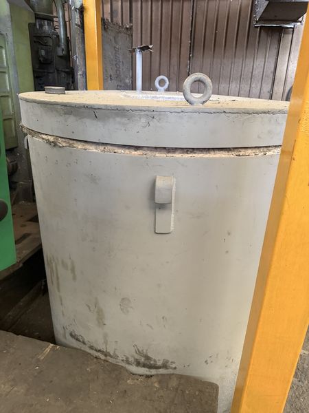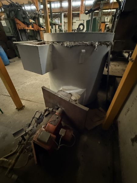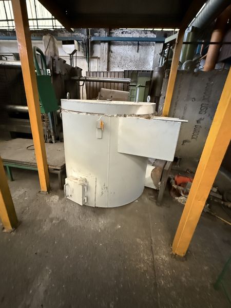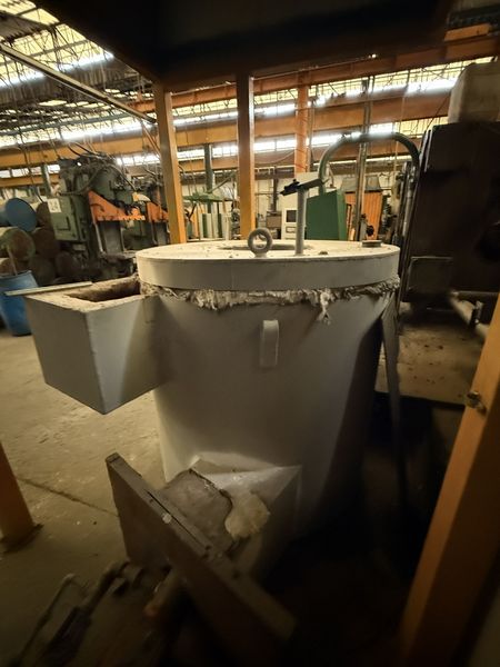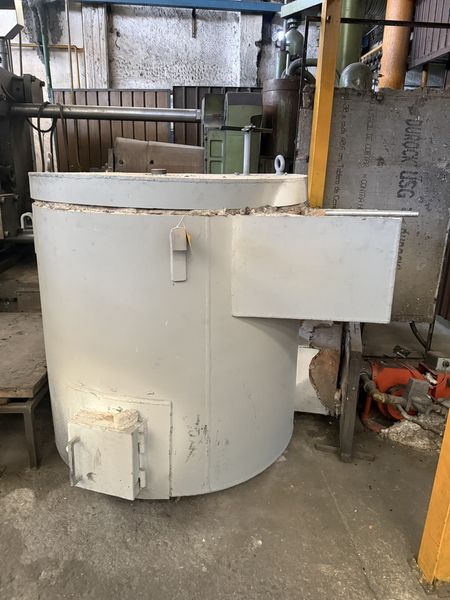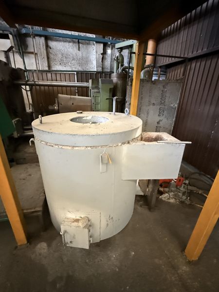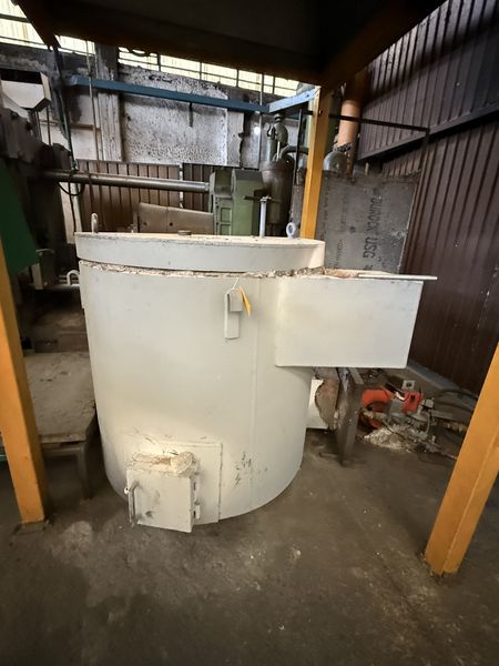 Natural gas–fired holding furnace; Crucible Capacity approx. 250 kg; Equipped with COMOSA gas burner; Designed for holding molten aluminum in die casting or foundry operations. Natural Gas fired; Electrical controls. Ref: Holding furnace 1