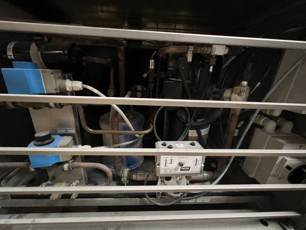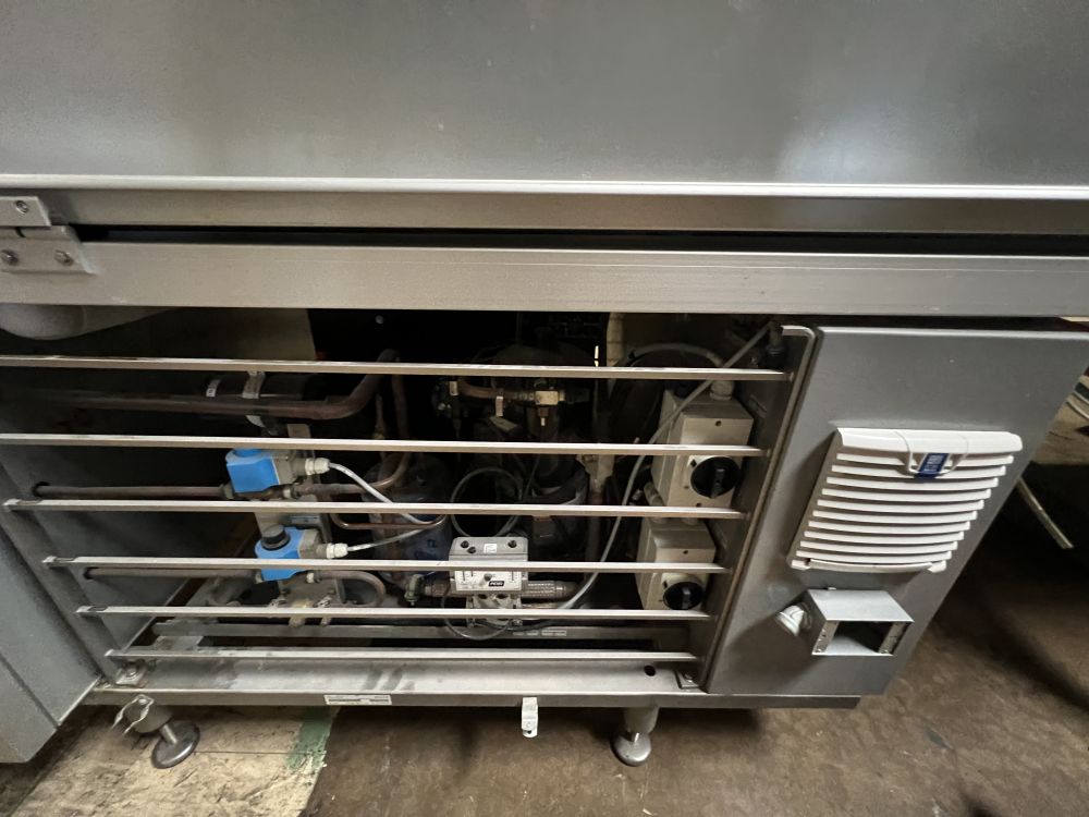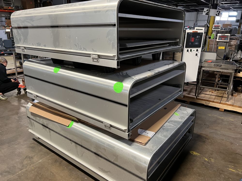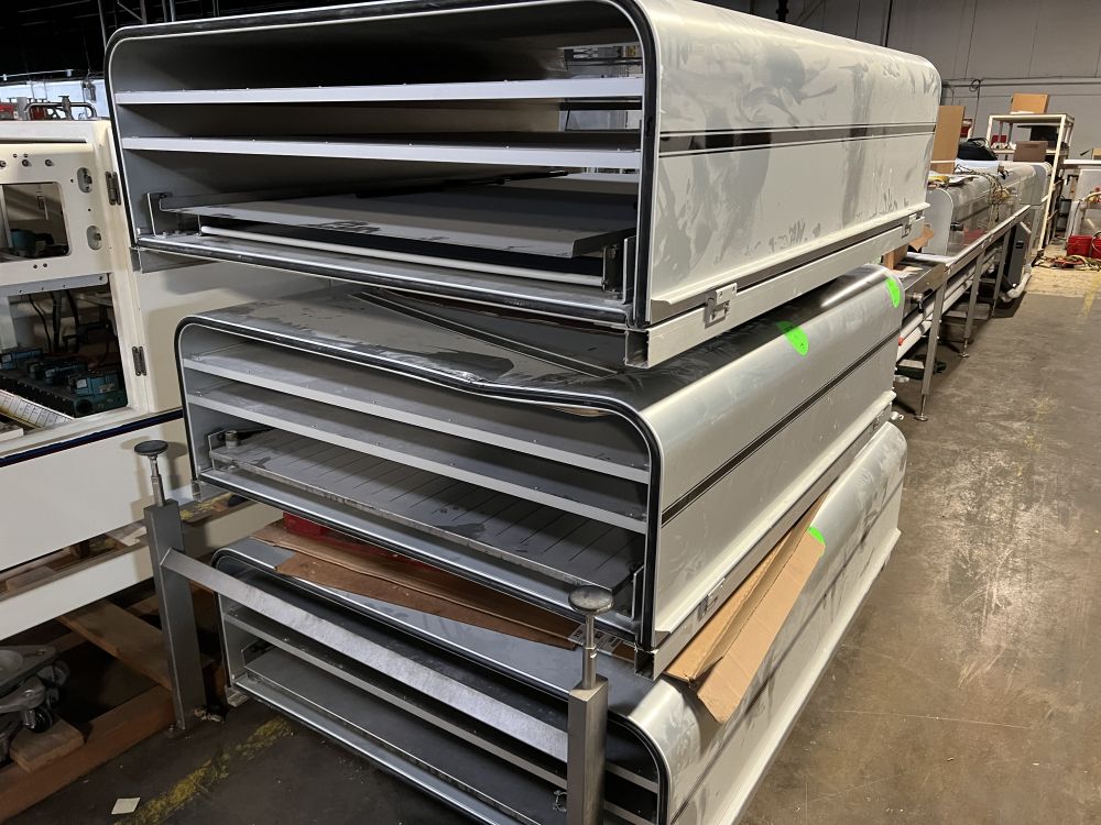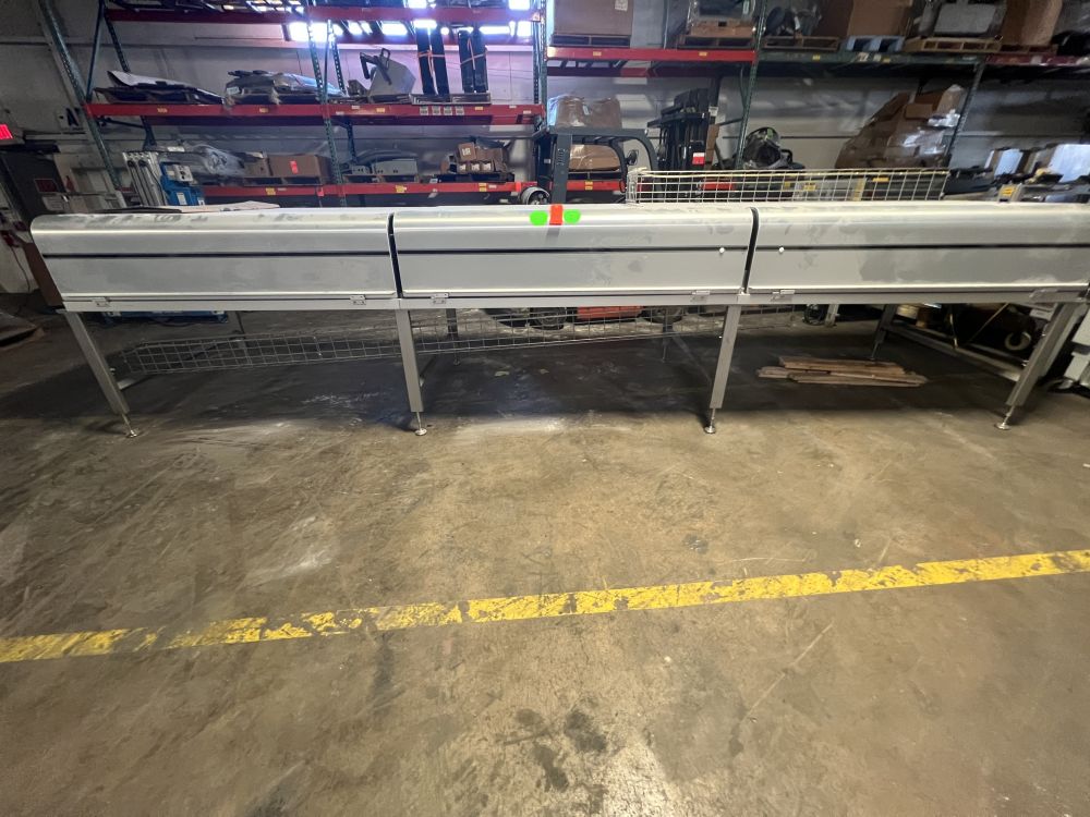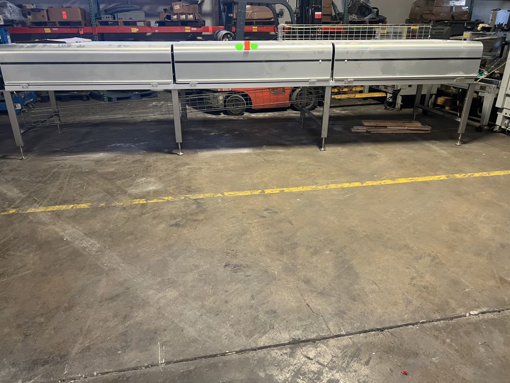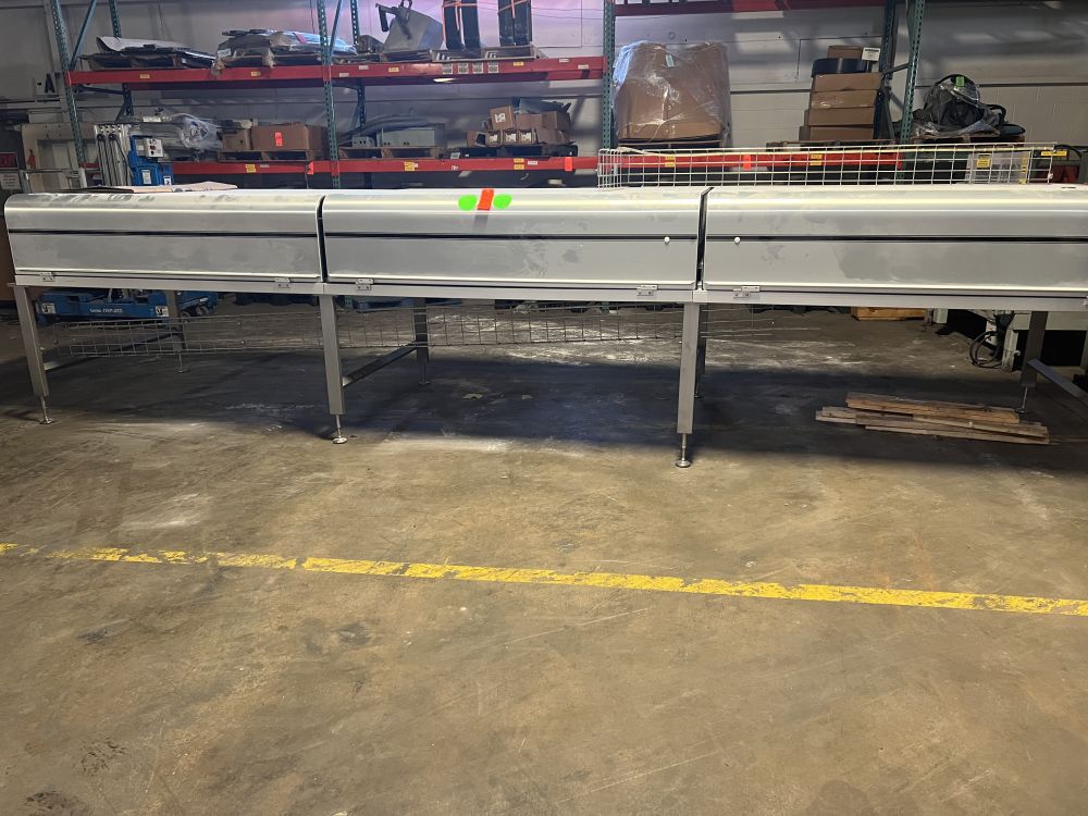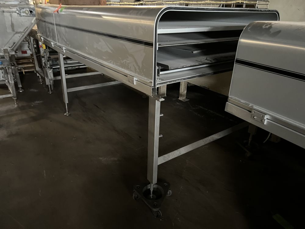 Nielsen Aasted Model Nielsen1050 65 ft L x 42 in W Cooling Tunnel, with Aluminum Hood, Compressor Section, and (3) additional 69 in. Bed Sections with Hoods and no Base.