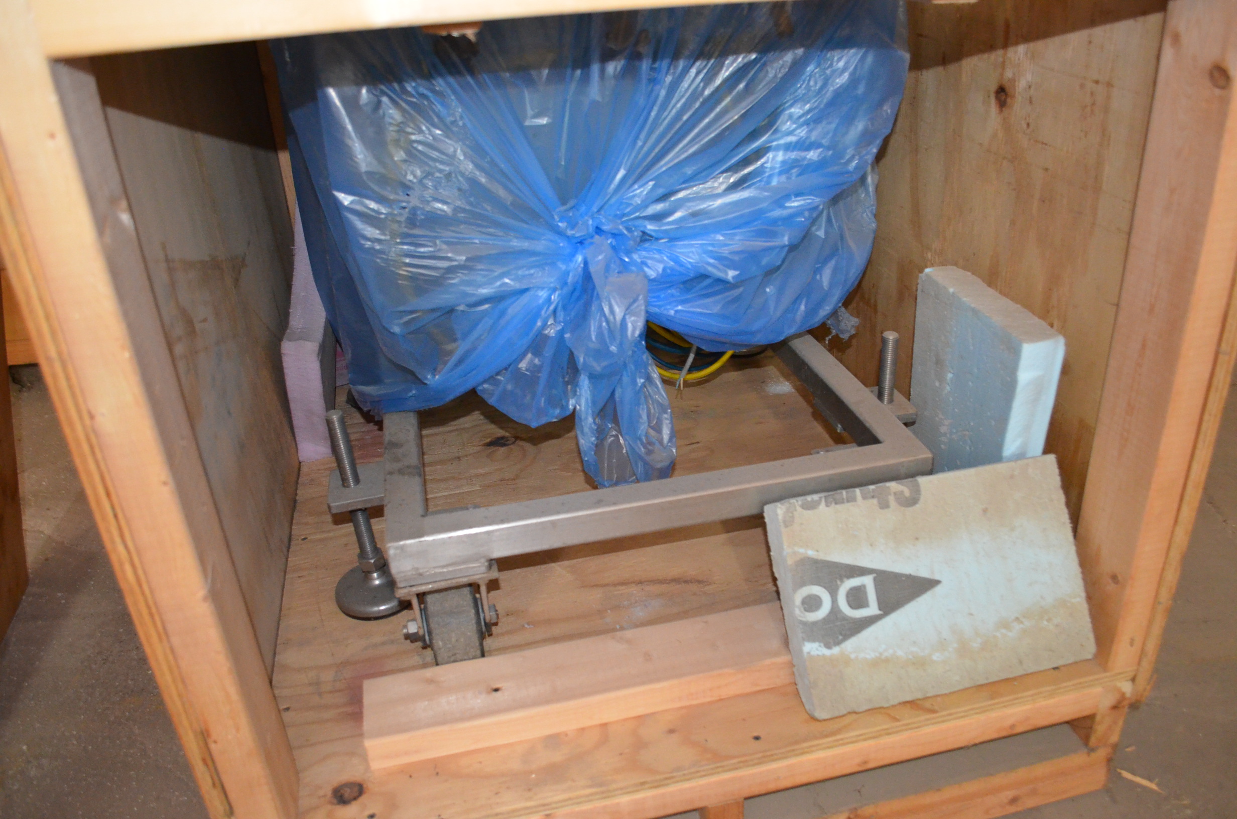 Orics Model S30 (3) Head S/S Piston Filler. Approx 18 in Diameter S/S Hopper. Approx 3 in Diameter Pistons. Portable S/S Base.