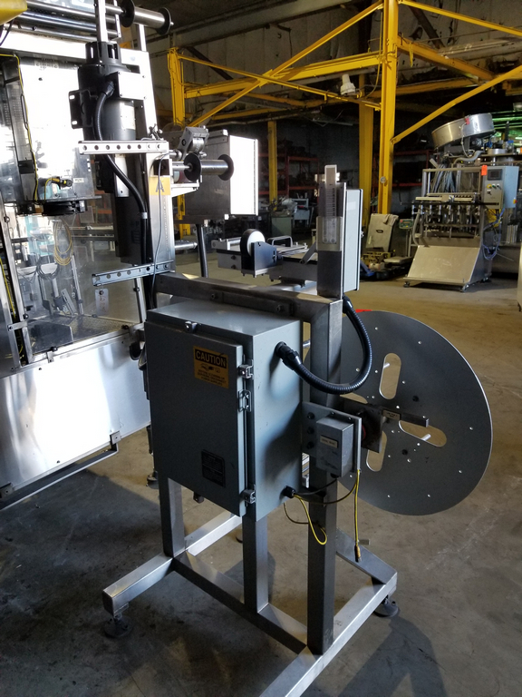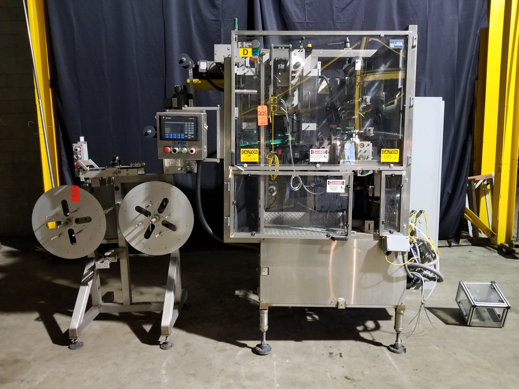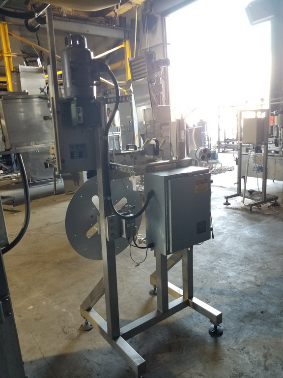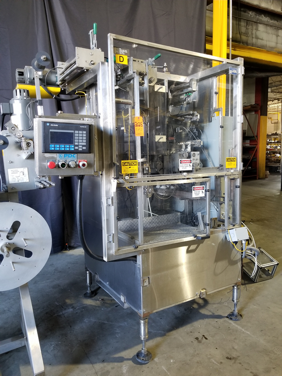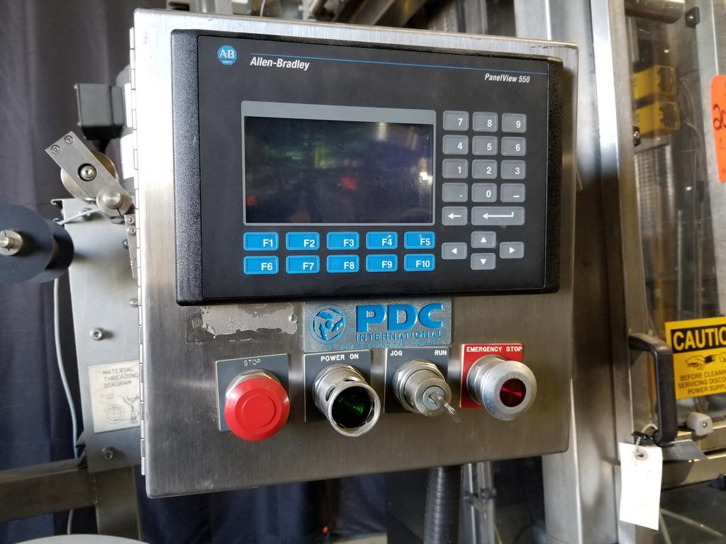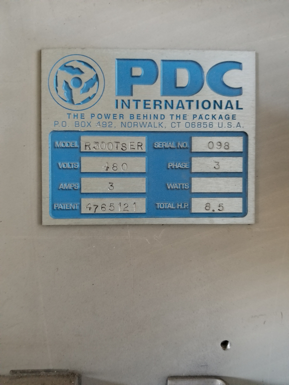 PDC Model R300 Shrink Sleeve Labeler with PDC Model KAL300 (3) Zone Heat Shrink Tunnel. Model UW30 Dual Roll Label Unwinder Speeds up to 350 Bottles Per Minute. Bar Code Reader. Acusort Adaptascan. Inspection / Ejection Verification System. Infeed / outfeed Fallen Bottle Sensors. Allen Bradley PLC Controls with Panelview 550 HMI. 480 V, 3 Ph, 35 Amp.
