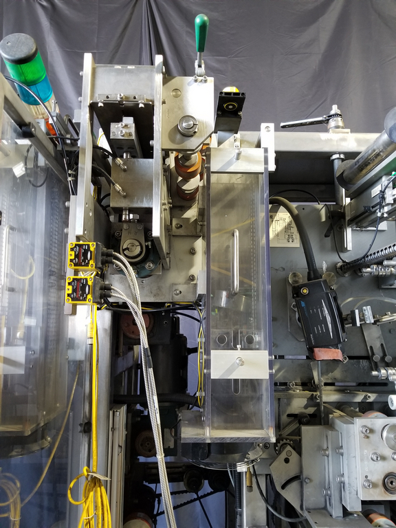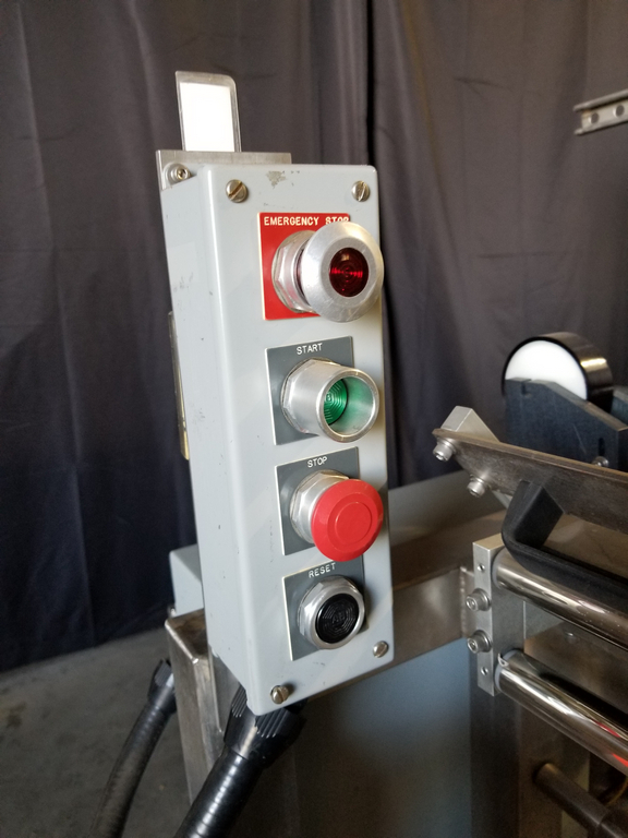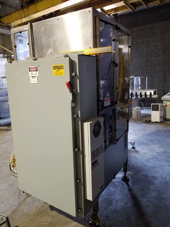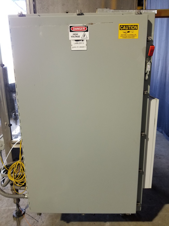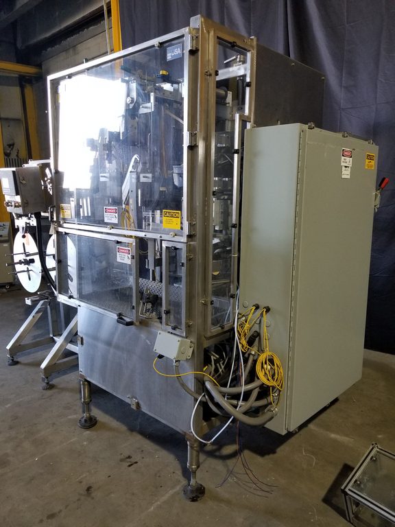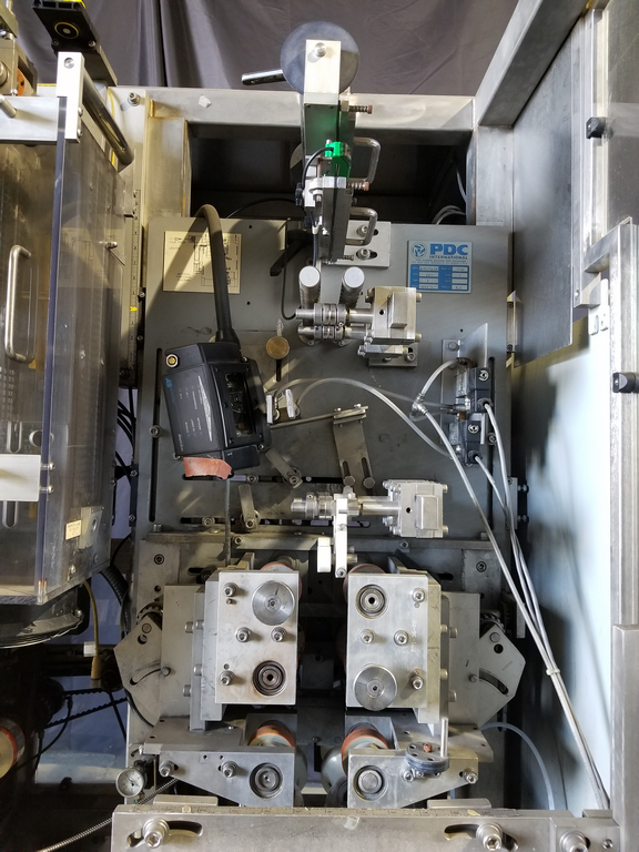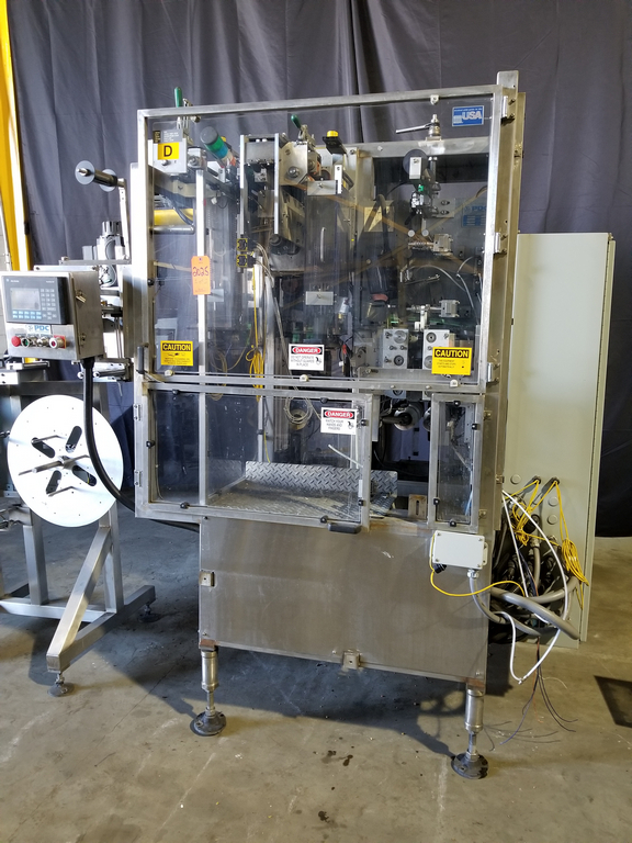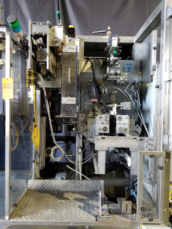 PDC Model R300 Shrink Sleeve Labeler with PDC Model KAL300 (3) Zone Heat Shrink Tunnel. Model UW30 Dual Roll Label Unwinder Speeds up to 350 Bottles Per Minute. Bar Code Reader. Acusort Adaptascan. Inspection / Ejection Verification System. Infeed / outfeed Fallen Bottle Sensors. Allen Bradley PLC Controls with Panelview 550 HMI. 480 V, 3 Ph, 35 Amp.