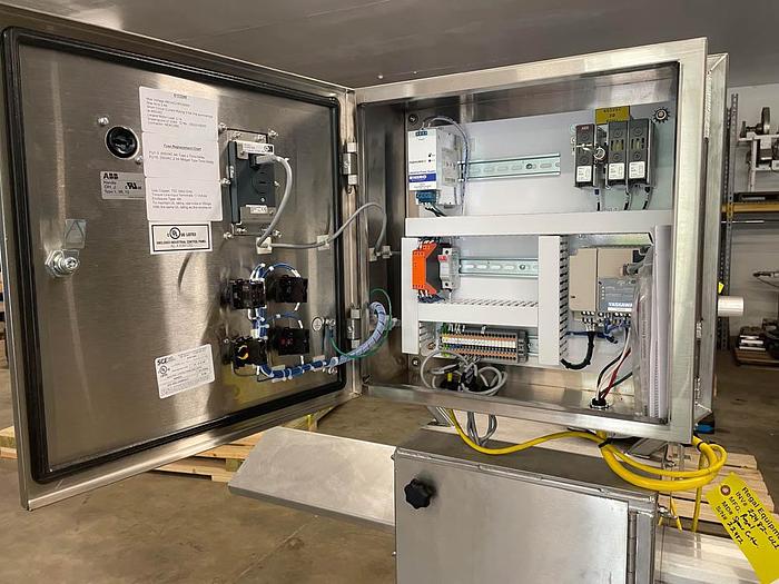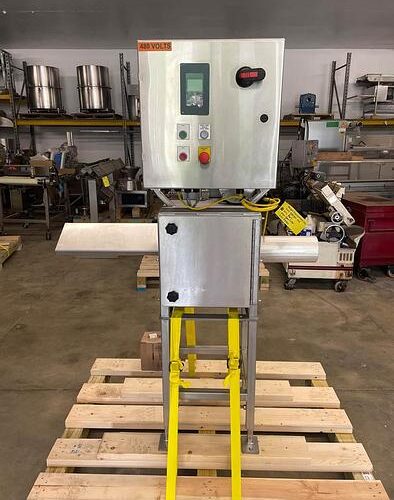 Regal S/S Pickle Spear Cutter. Specifically designed to cut elongated products such as Pickles and Zucchini in 1/2, 4th, 5th, 6th, segmented patterns. The cutter is equipped with a 3/4 Hp. electric motor which drives the feed rolls and can accommodate various dimeters of product such as small pickles approximately 3/4″ Dia. to 4″ Dia. round product in varying lengths. The simple design allows for easy changeovers between cut configurations and adjustment for varying dimeters of product. The machine is all Stainless Steel Construction with a stainless cutting chamber and blade assembly. Blades are designed to be switched out easily with simple tooling. Cutting chamber is fully enclosed, includes safety package with magnetic disconnects and E-Stop. Simple operator controls with speed adjustment and push-button controls to Stop and Start the machine. Capable of being integrated into an automated line controls. Overall Dimensions: 48″ Long (End of Infeed Guard to End of Discharge Chute) x 28″ Wide x 74″ Tall (Adjustable Legs Approximately 8″ of adjustment in leg.). Required utilities are 3 Phase Electric, 230 volt or 460 Volt.