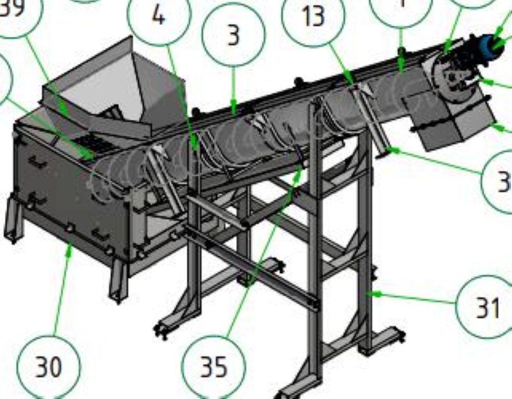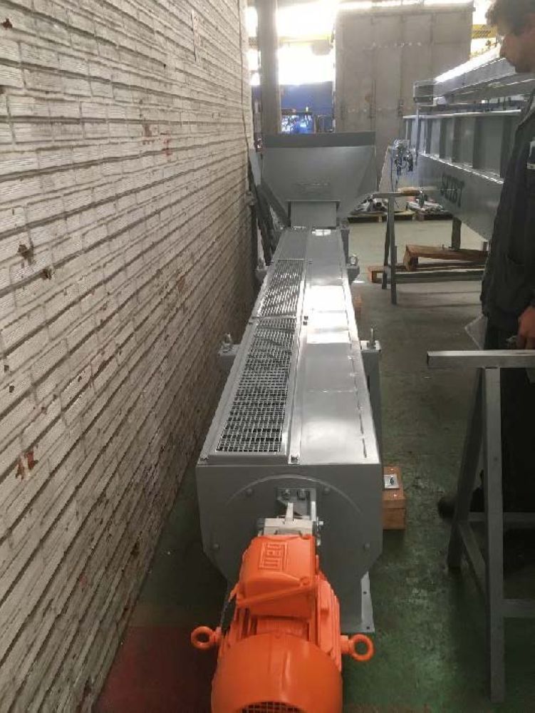 Seibt 400mm W x 300mm L S/S Screw Conveyor. Stainless Steel Body. Partially perforated body for water drainage. Support feet made of carbon steel plate with anti-oxide paint. Stainless Steel Helicoid with 600mm diameter, 6.35mm thickness. Collection gutters, drainage, top covers made of stainless steel. Stainless Steel Axle. Screw length 3000mm. Screw driven by reducer and 4HP three-phase electric motor.