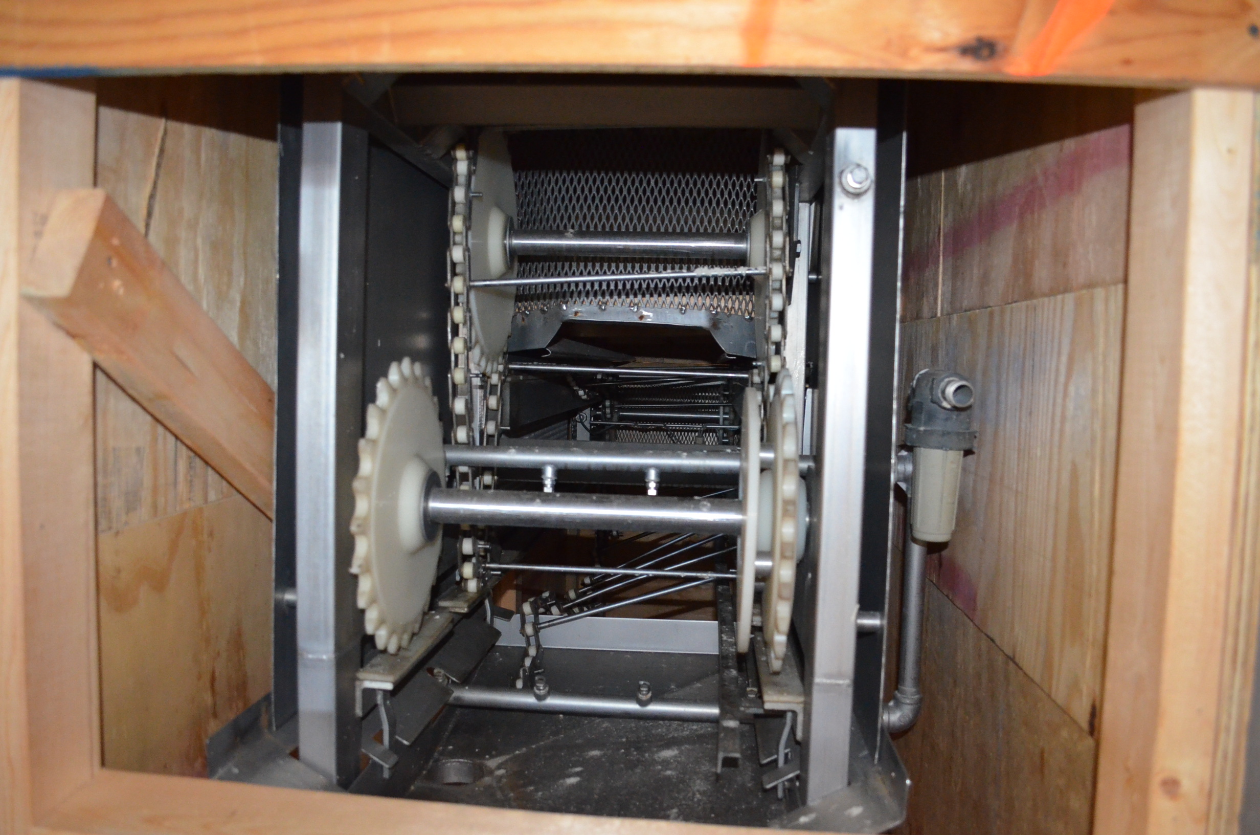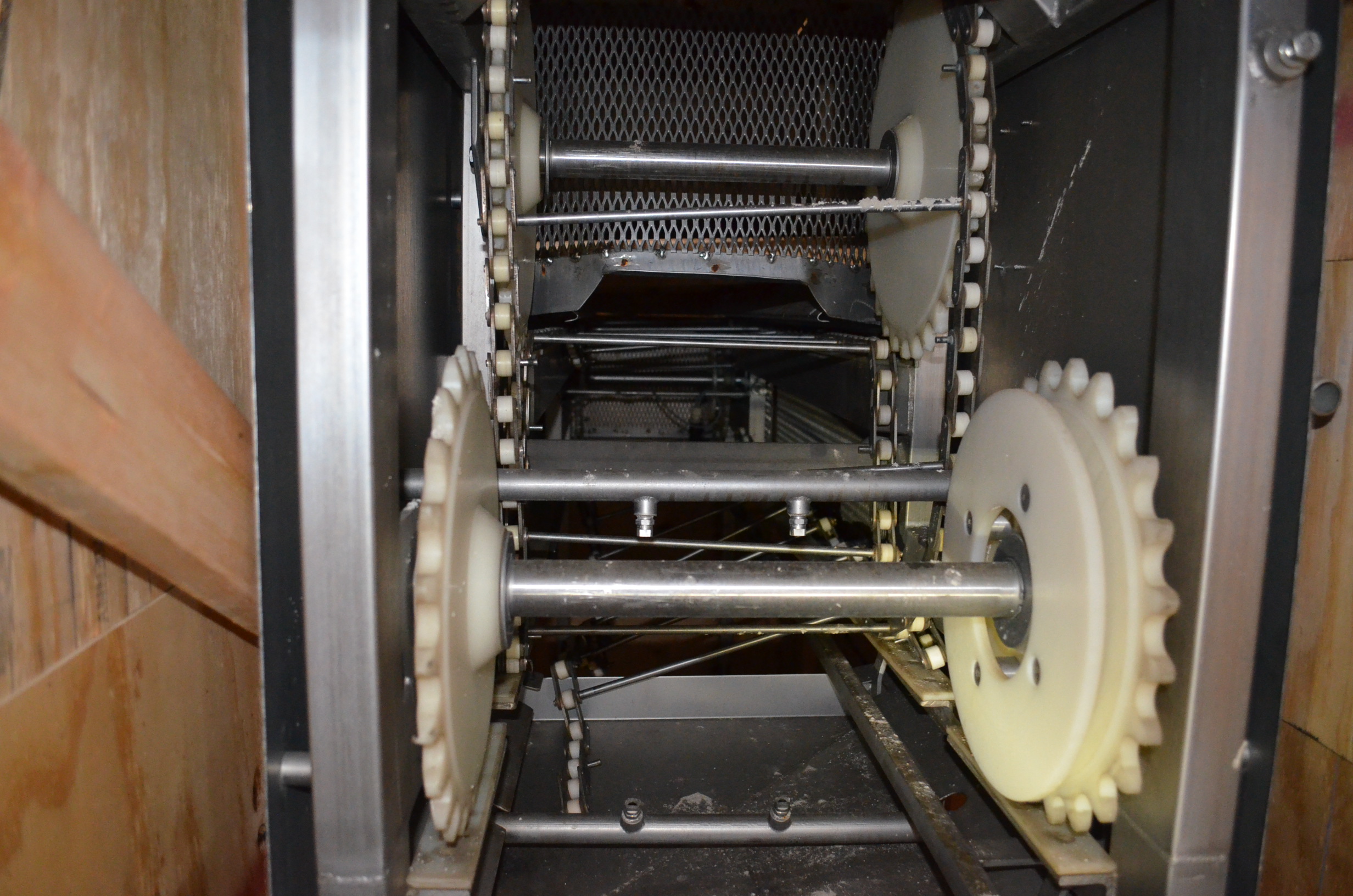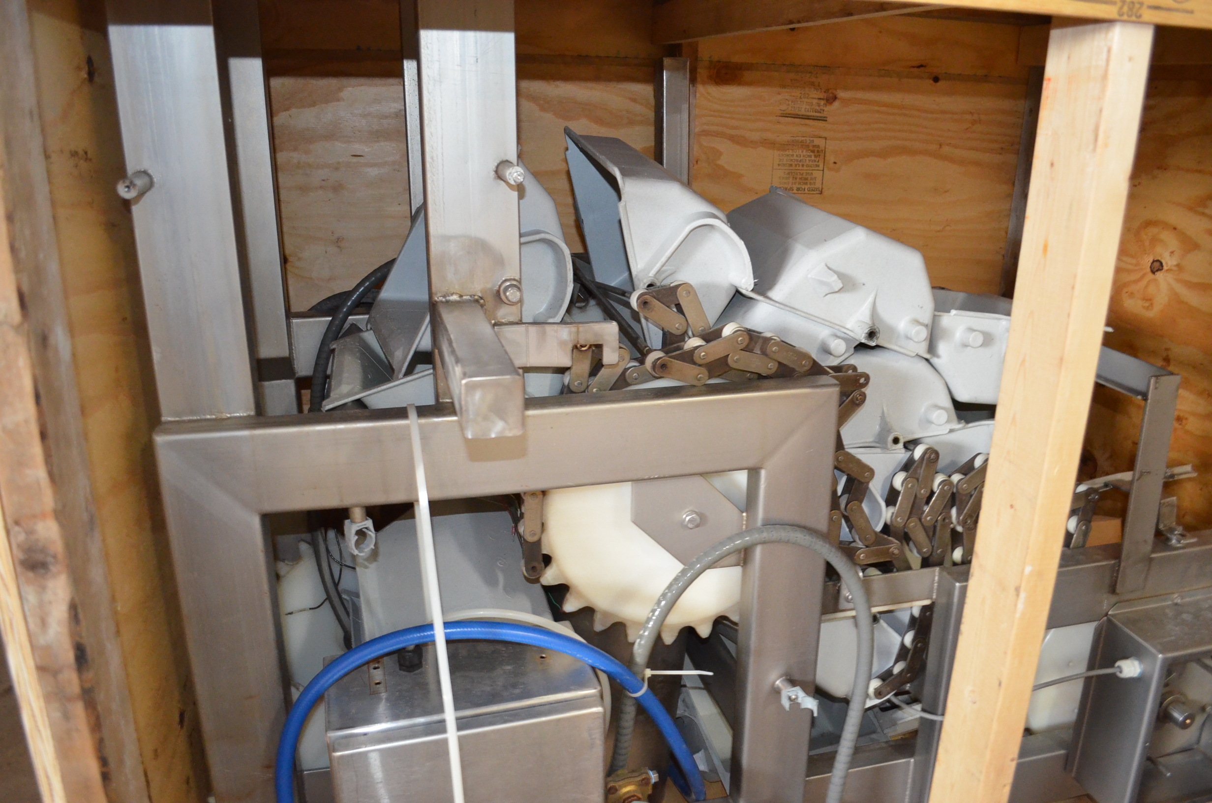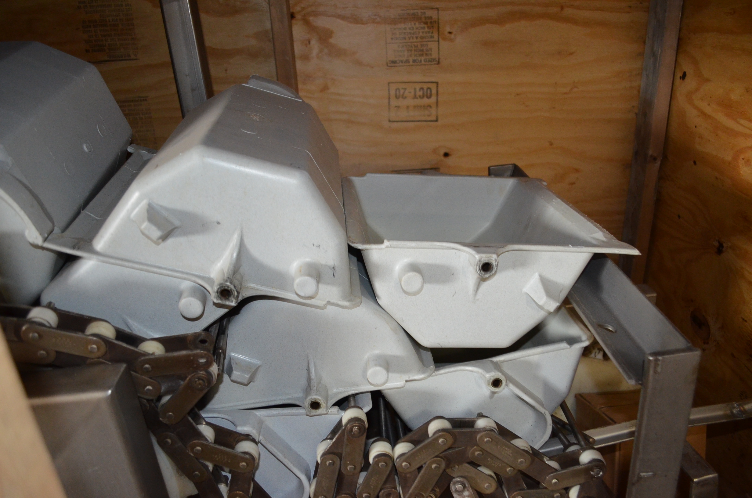 Smalley S/S Z-Shaped Bucket Elevator. 12 in x 10 in Plastic Buckets. Approx Height of Vertical Section is 9 Feet.