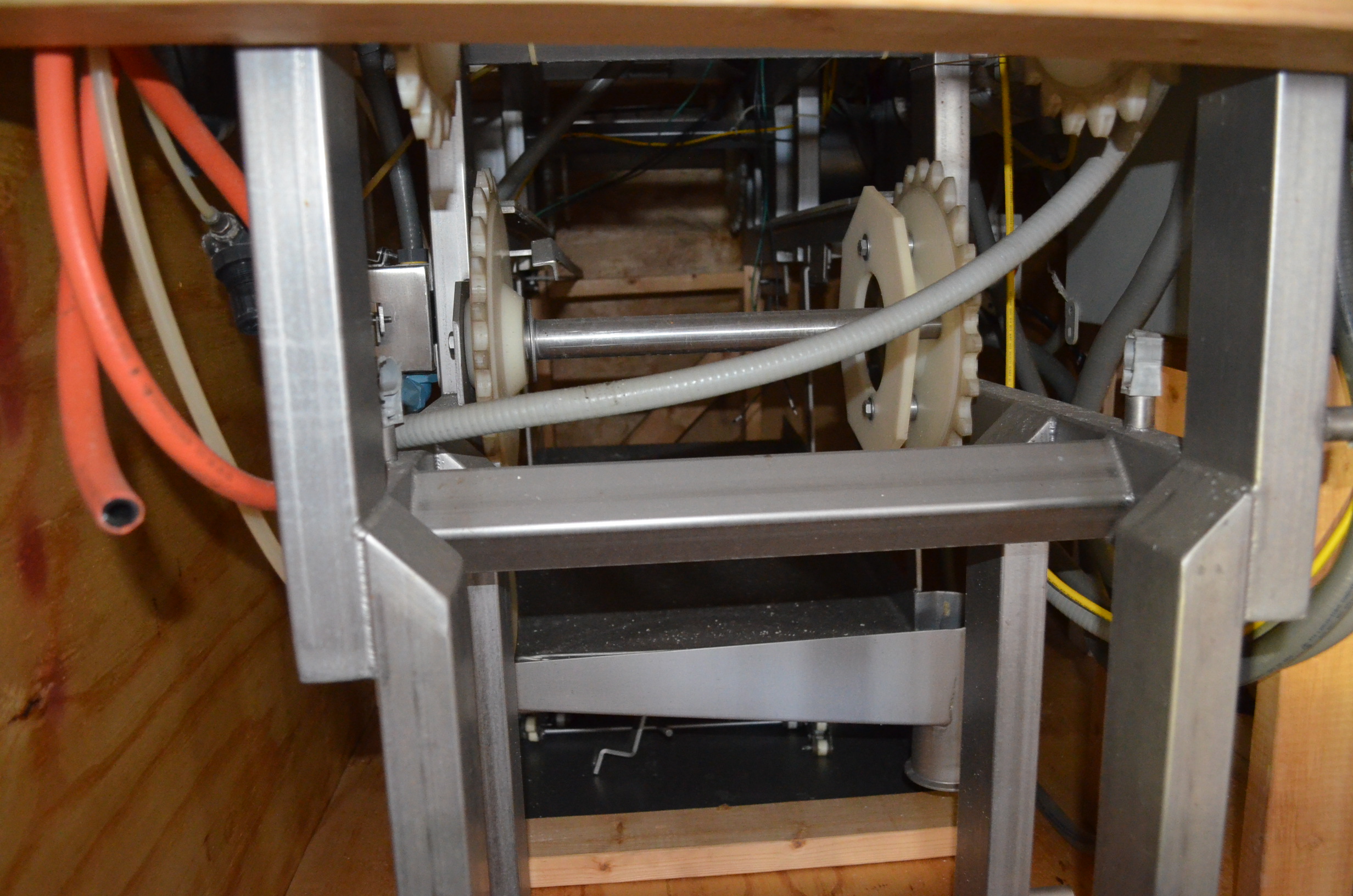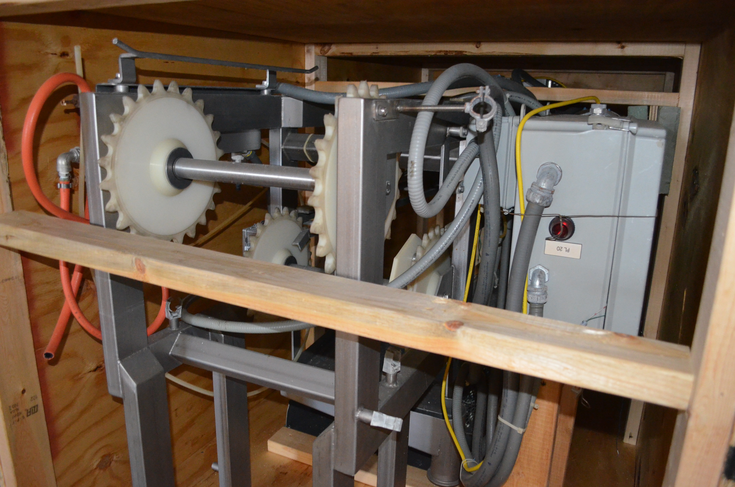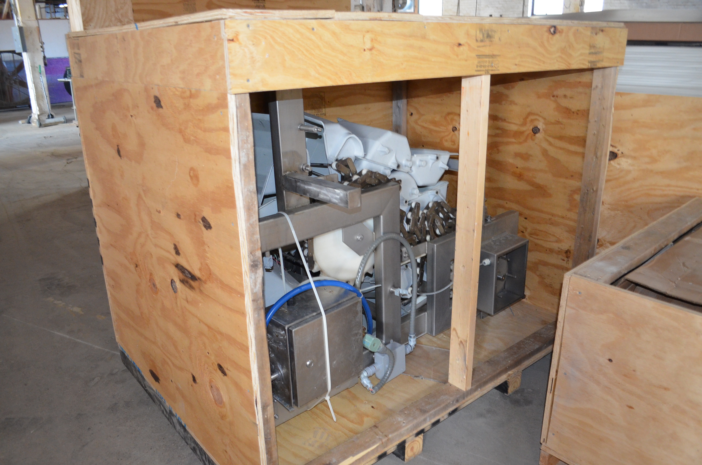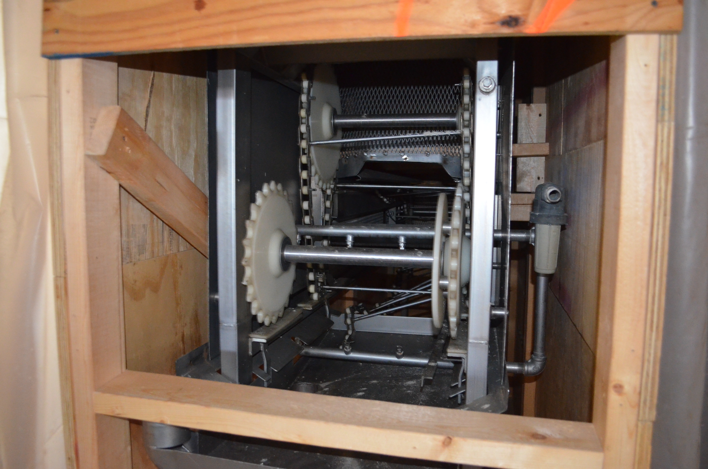 Smalley S/S Z-Shaped Bucket Elevator. 12 in x 10 in Plastic Buckets. Approx Height of Vertical Section is 9 Feet.