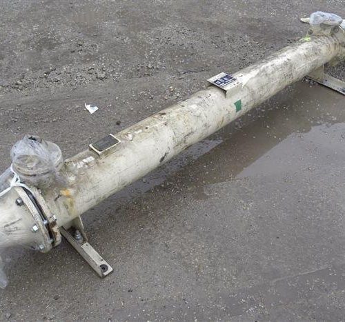 Sollich 40 Sq Ft Horizontal C/S Shell And Tube Heat Exchanger. Carbon steel shell rated 6 Bar (87 psi) at 100 Degrees C. (212 Degrees F). (31) 3/4in diameter x 6 ft6 in long 304 stainless steel tubes rated 6 Bar (87 psi) at 100 Degrees C. (212 Degrees F). Carbon steel heads. Openings: head (2) 3in, shell (2) 2in