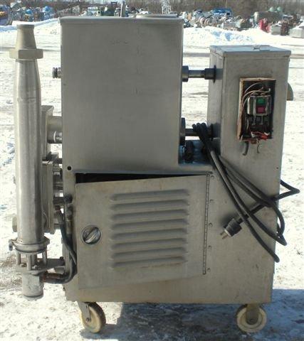 St. Regis Mdl S430 Stainless Steel Portable Fruit Feeder 16in X 17in X 16in deep Auger Feed Bowl, Rated 100-2700 Gallons per hour. Approximate 16 in long x 16 in wide x 14in deep hopper with a 1 3/4in diameter shaft with 4 angeled pins and a 4 in diameter x 20 in long bottom screw discharge. 4 in sanitary threaded outlet. Driven by an approximate 5 HP gearmotor. Mounted on casters