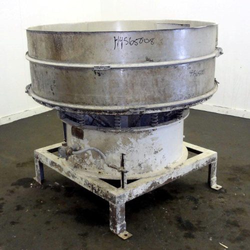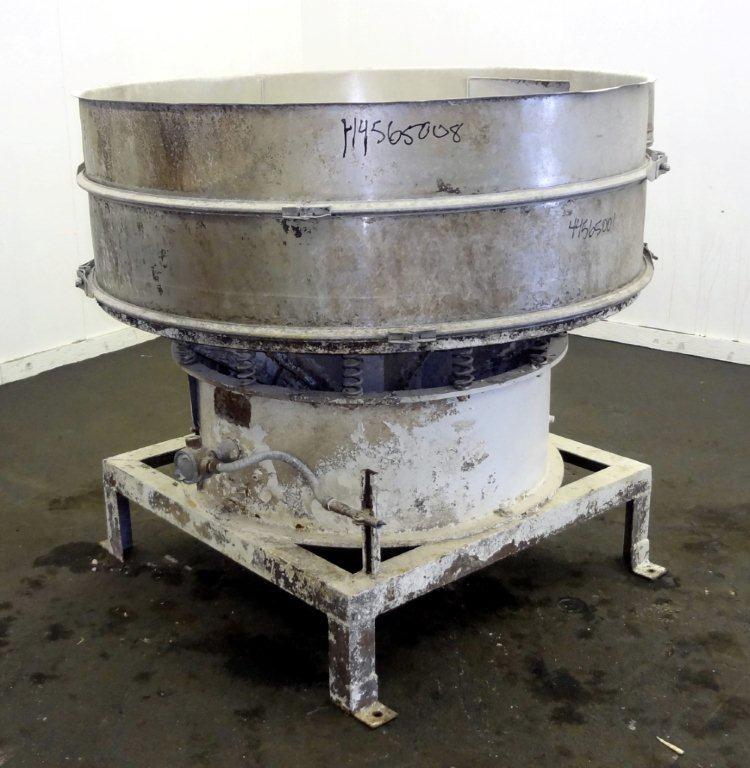Sweco 60 in Diameter Single Deck 2 Separation S/S Screener. Driven by a 2.5 HP, 3/60/230/460 volt, 1160 rpm motor. Mounted on a carbon steel base with a 12 in tall carbon steel frame. No top cover
