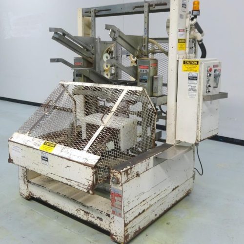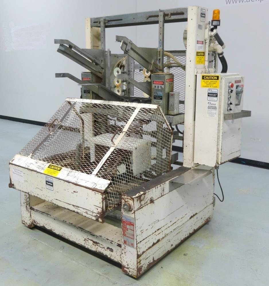 SWF Model 1T4 Automatic Hot Melt Glue Tray Former. Machine is capable of speeds up to 35 trays per minute depending on case size. Has a tray size range of 7 in to 34 in length, 8 1/8 in to 22 in width, 1 in to 12 in depth (with proper change parts). Has a knockdown case size range of 10 1/2 in to 27 7/8 in length, 12 in to 36 in width. Has a Vacuum style blank tray pick system and hot glue pot adhesive system. Machine can be customized and set to size at an additional cost subject to receipt of samples. 480V/3/60/