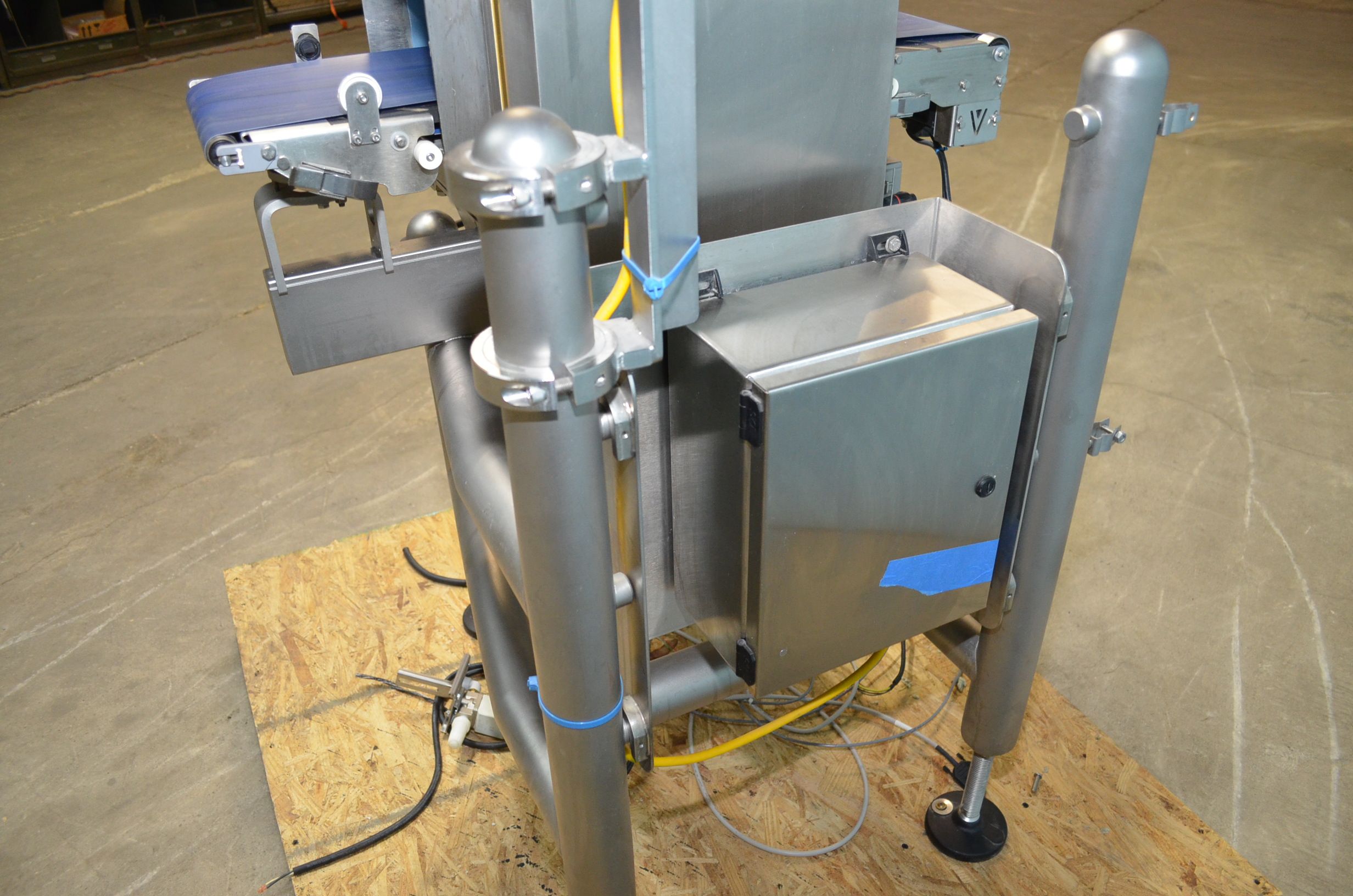 Thermo Scientific Model Apex500 S/S Conveyorized Metal Detector. 10 in W x 4 3/4 in H Useable Aperture, 8 in W Flat Vinyl Belt. Right to Left Configuration. Digital Touch Controls. Height Adjustable Feet. S/S Frame. 115 V, 1 Ph, 60 Hz.