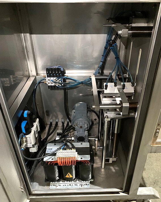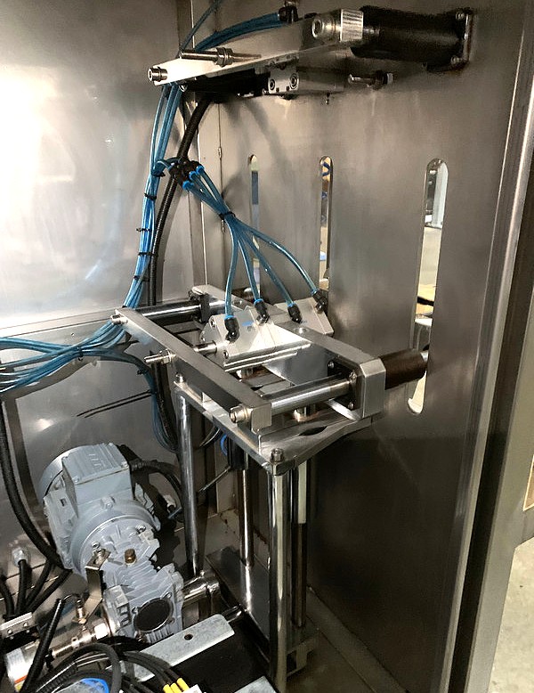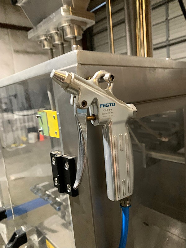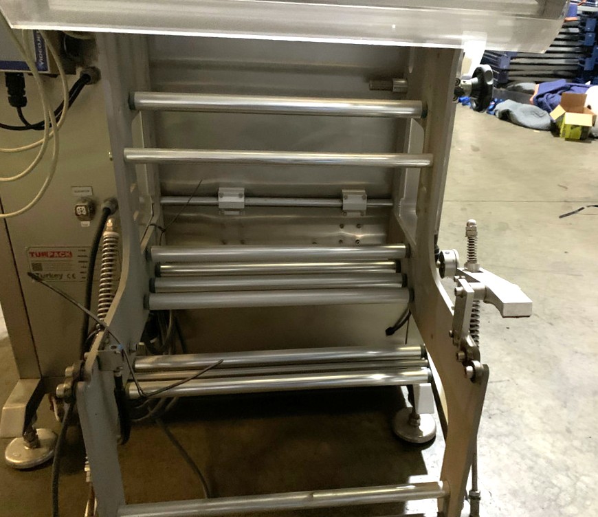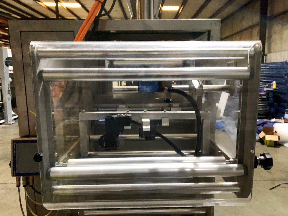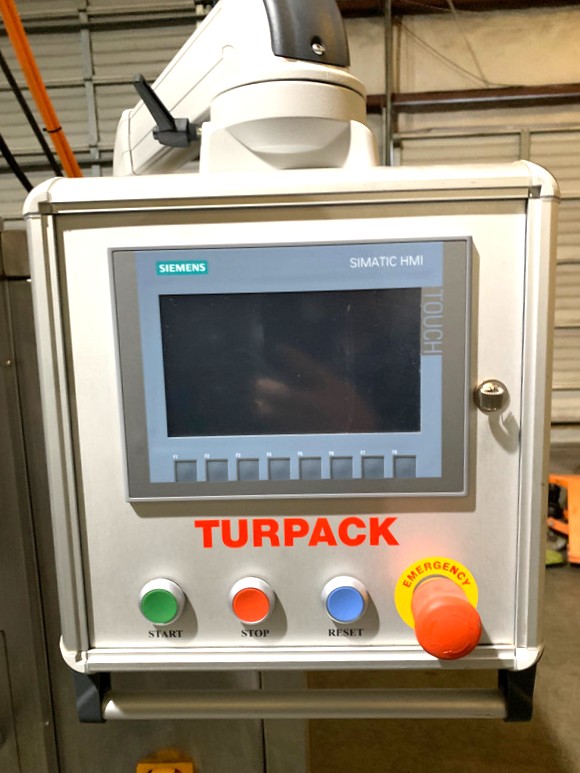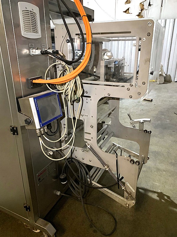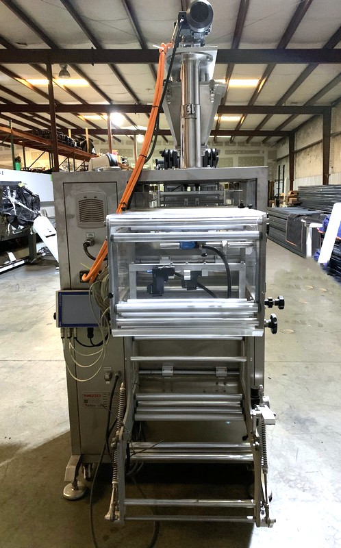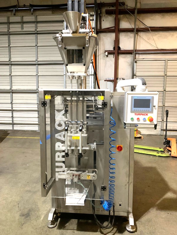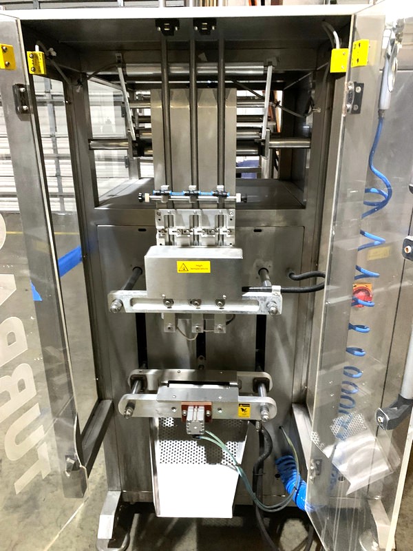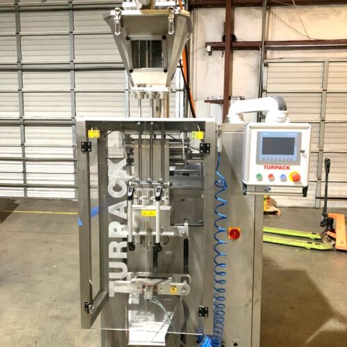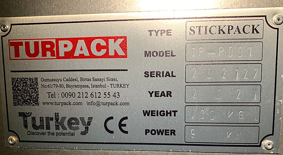 Turpack Model TPP001 (3) Lane Vertical StickPack Machine. 27 Mil with Video Jet Model 8520 Ink Jet Coder and Easy Tear Notch Attachment.