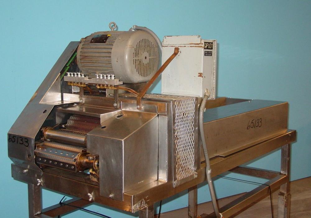 Urschel Model J Slicer. Rubber infeed belt, (22) vertical rotary serrated knifes,,producing 1/2 in cut, (6) 10 3/4 in L horizontal knifes,producing 1/2 in cut, 5hp 3/230-460/60 (wired 460) 1150 Rpm, 13.5/6.8 amps, S/S frame w/ (4) casters. The Urschel Model J Is A Versatile Machine Designed For Dicing Or Strp Cutting A Variety Of Products Through A Wide Range Of Sizes. The Machine Is Equipped With S/S Product Contact Parts. Products Up To 3/8in. (9.5 Mm) Thickness Can Be Cut With A Minimum Of Fines. The Model J Uniformly Dices Or Strip Cuts Cooked Or Frozen-tempered Meats, And Efficiently Cuts Cuts Spinach, Peppers, Citrus Peel, Celery, Broccoli, And Par,produces 1/2 in cut,sley. The Model J Operates Continuously At High Production Capacities, And Designed For Easy Cleanup And Maintenance. Types Of Cuts Many Sizes Of Strip Cuts Are Possible By Combining Various Selections Of Circular Knife Spacings With Different Crosscut Knife Spindles. Circular Knife Cuts: 3/16 To 2in. (4.8 To 50.8 Mm) Crosscut Knife Cuts: 3/16 To 3in. (4.8 To 76.2 Mm) Strip Cuts: Strip Cuts Can Be Made By Removing The Crosscut Knife Spindle From The Machine. The Length And Thickness Of The Strips Will Depend Upon The Size Of The Original Product.