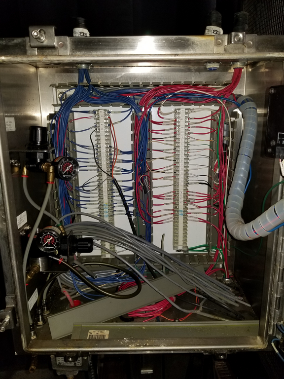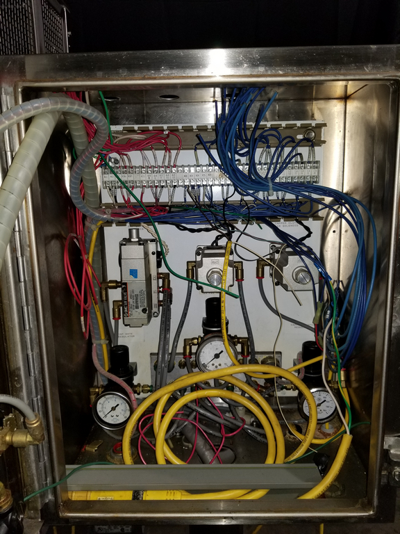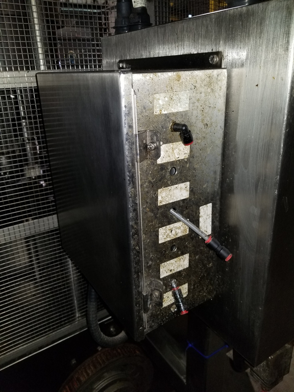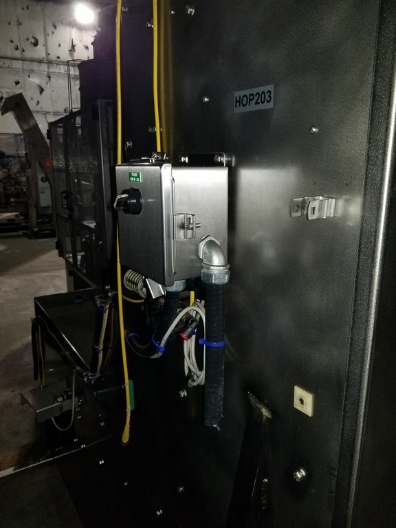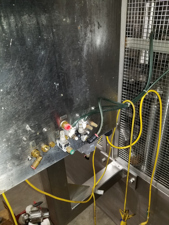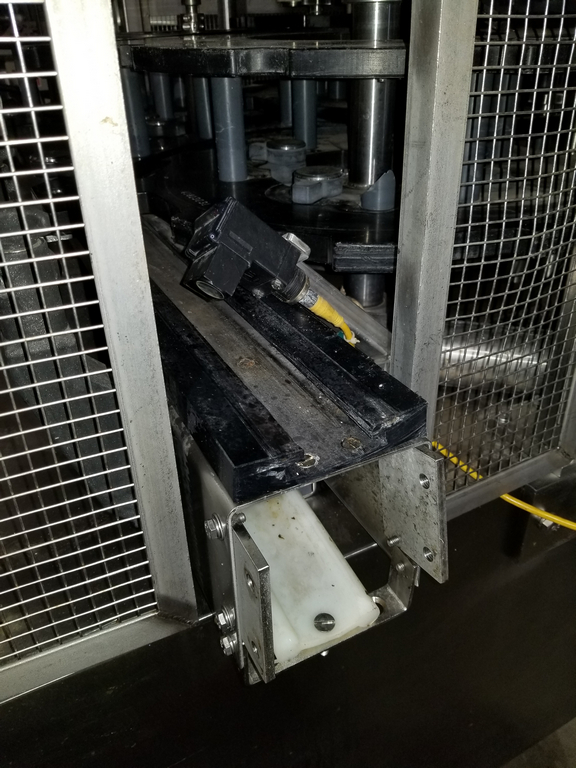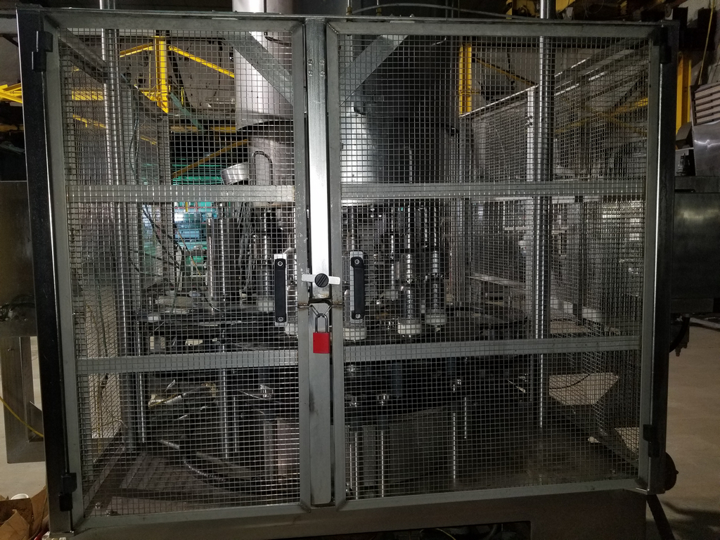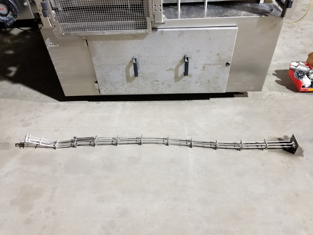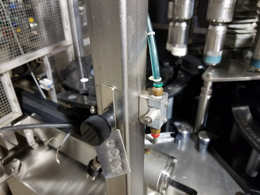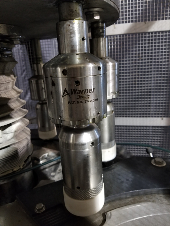 US Bottlers Model MC10SS (10) Head S/S Rotary Screw Capper. All Stainless-Steel Construction. 10 Capping Heads on 7 in Centers. New Style Warner All S/S Magnetic Clutches for Torque Control. Cap in Head Cap Transfer System. Includes All Stainless Elevator/Sorter. Container Travel Left to Right. 4-1/2 in Tabletop Conveyor Channel Through System. Conveyor Length 86 in. Infeed Star Diameter 22 in. Infeed Star has 10 Pockets. Discharge Star Diameter 22 in. Discharge Star has 10 Pockets. Overall Dimensions 107 in L x 56 in W x 108 in H.