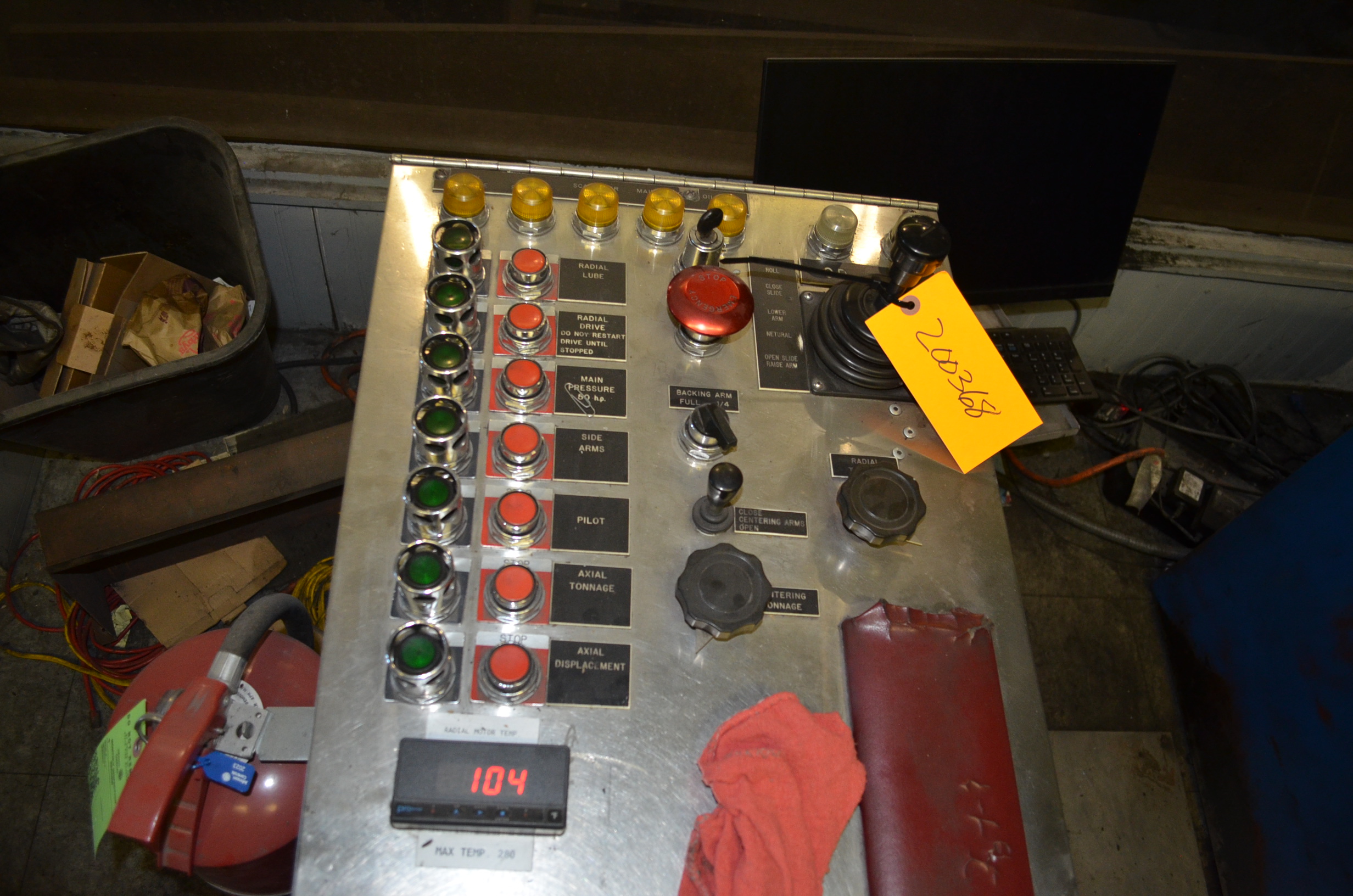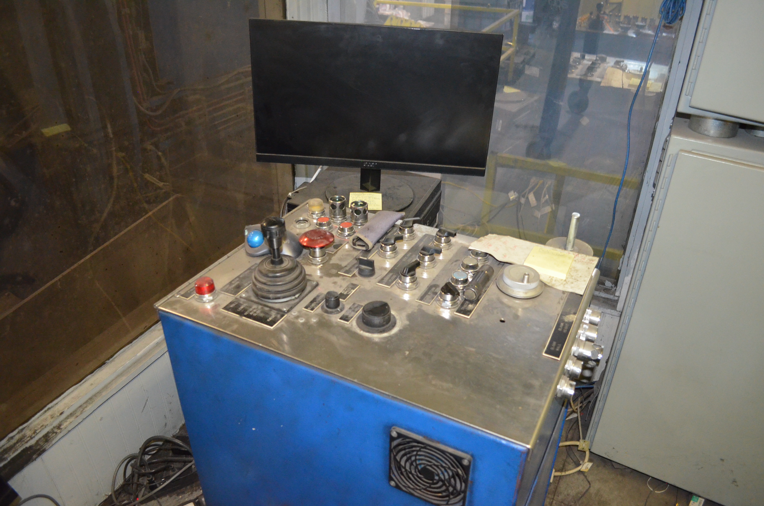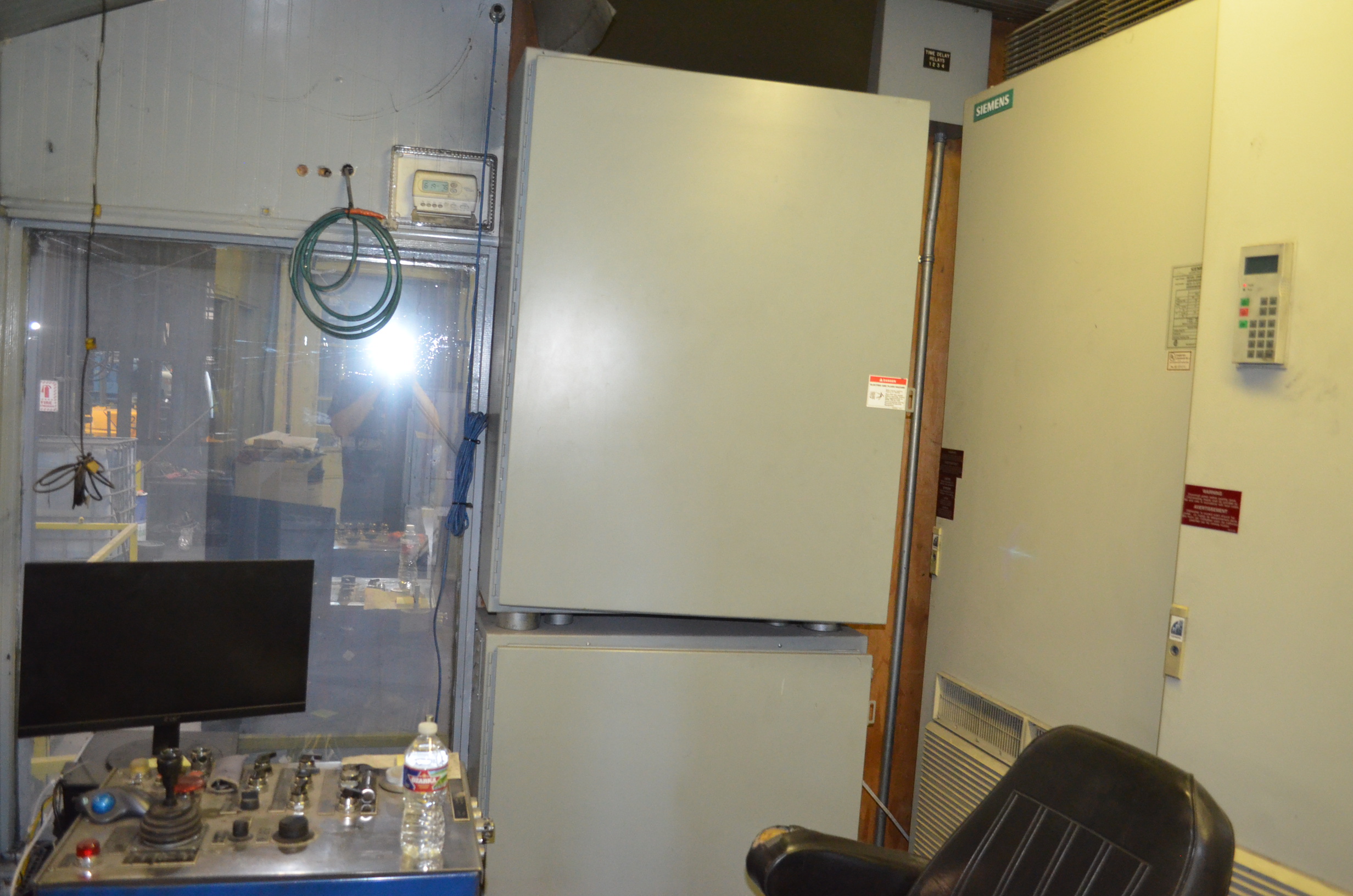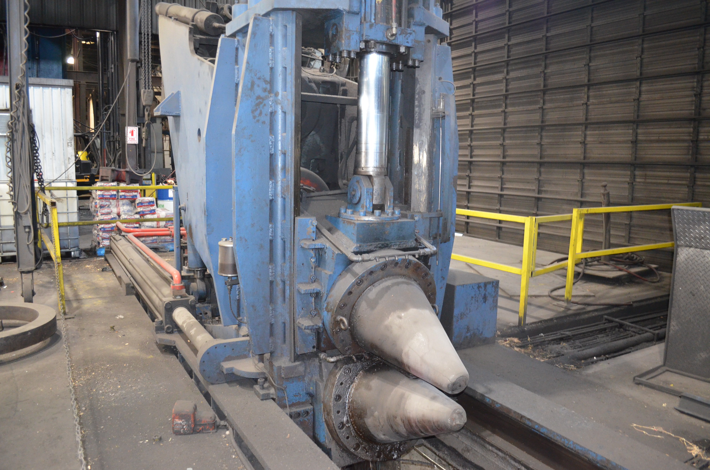 Wagner Model R125 125-Ton Ring Forming Mill. 115″ OD x 72″ High Ring Forming Mill, Finished Ring Size, 125 Ton Cone Rolls, 125 Ton Mandrel, Hydraulic Cone Assembly Movement, Hydraulic Mandrel Adjustment, Side Guide Rolls With Hydraulic Adjustment, Power Overhead Clamp, Closed Loop Cone & Mandrel Coolant System, Hydraulic Cone Adjustment, Dedicated Hydraulic System With Fluid Reservoir, [2] 7-1/2 HP / 15 HP / [3] 50 HP Motors, Valves, Hydraulic Lines, Control Room With Siemens Control Panels, Overall System PC Based Control Station With Component Controls, Dual Joystick Controls, Dedicated 2 Ton Rolling A-Frame, Dedicated Hotsy Pressure Washer