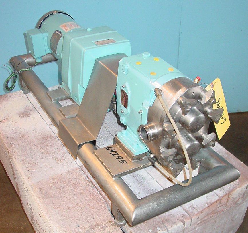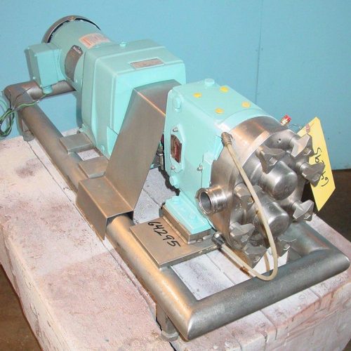 Waukesha model 30 positive displacement pump, w/ air seals, 1 1/2 in Tri clamp inlet and outlet, 2 Hp 3/230/460/60 S/S drive 11.44 ratio gear box, S/S stand
