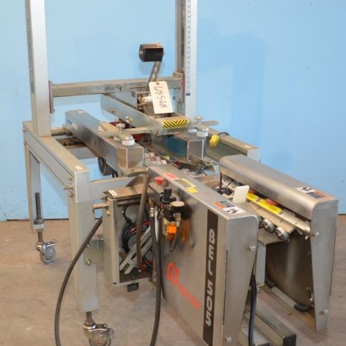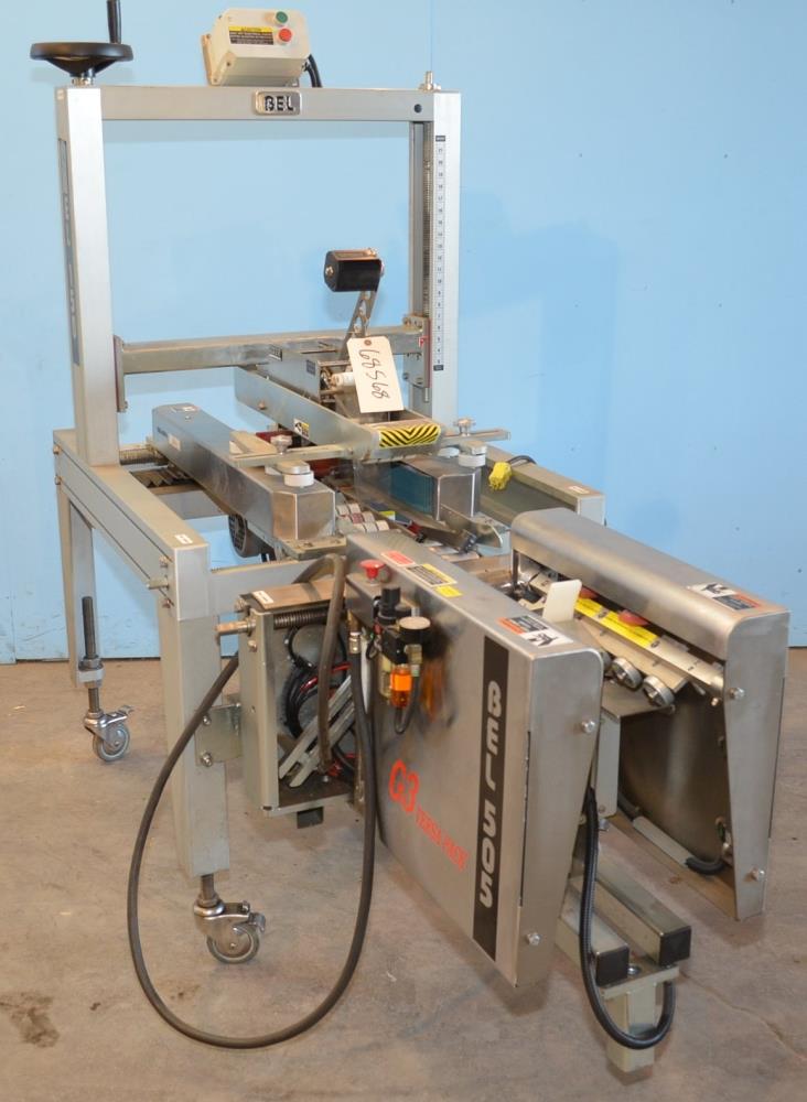 Belcor Model 150 Semi-Automatic Top and Bottom Case Sealer with Dekka Model 23, 3 in Wide Tape Heads. Includes Belcor Model 505 S/S Semi Automatic Case Former Packing Station Speeds Up To 30 CPM. Minimum Case Size 8 in L x 5.5 in W x 4 in H, Maximum Case Size Unlimited L x 17 3/8 in W x 21 in H. Dual 2 3/4 in W Side Gripper Belts.. Minimum Case Size 8 in L x 6 in W x 3.5 in H, Maximum Case Size 26.5 in L x 16 in W x Unlimited H. Bottom Major and Minor Flap Folding Mechanism, 80-90 PSI, 0.1 CF Per Cycle. Aluminum and Stainless Steel Construction.