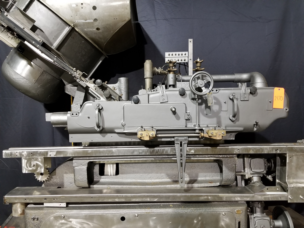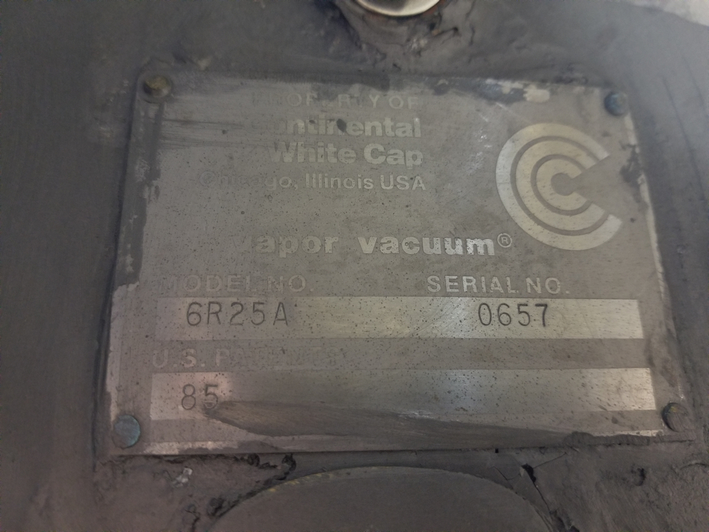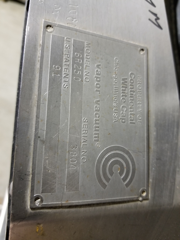 Whitecap Model VG Inline Steam Lug Capper. Bottle Diameter Range is 1 in to 6.75 in. Bottle Height range 1.75 in to 11.75 in. Vapor Vacuum Sealing Capper. Integrated Steam Control and Exhaust System. Capping Speeds up to 600 Containers Per Minute. Simple Set Up, Adjustment and Control. High Vacuum Efficiency. Random Fed Operation. 4-1/2 in Tabletop Chain Conveyor.