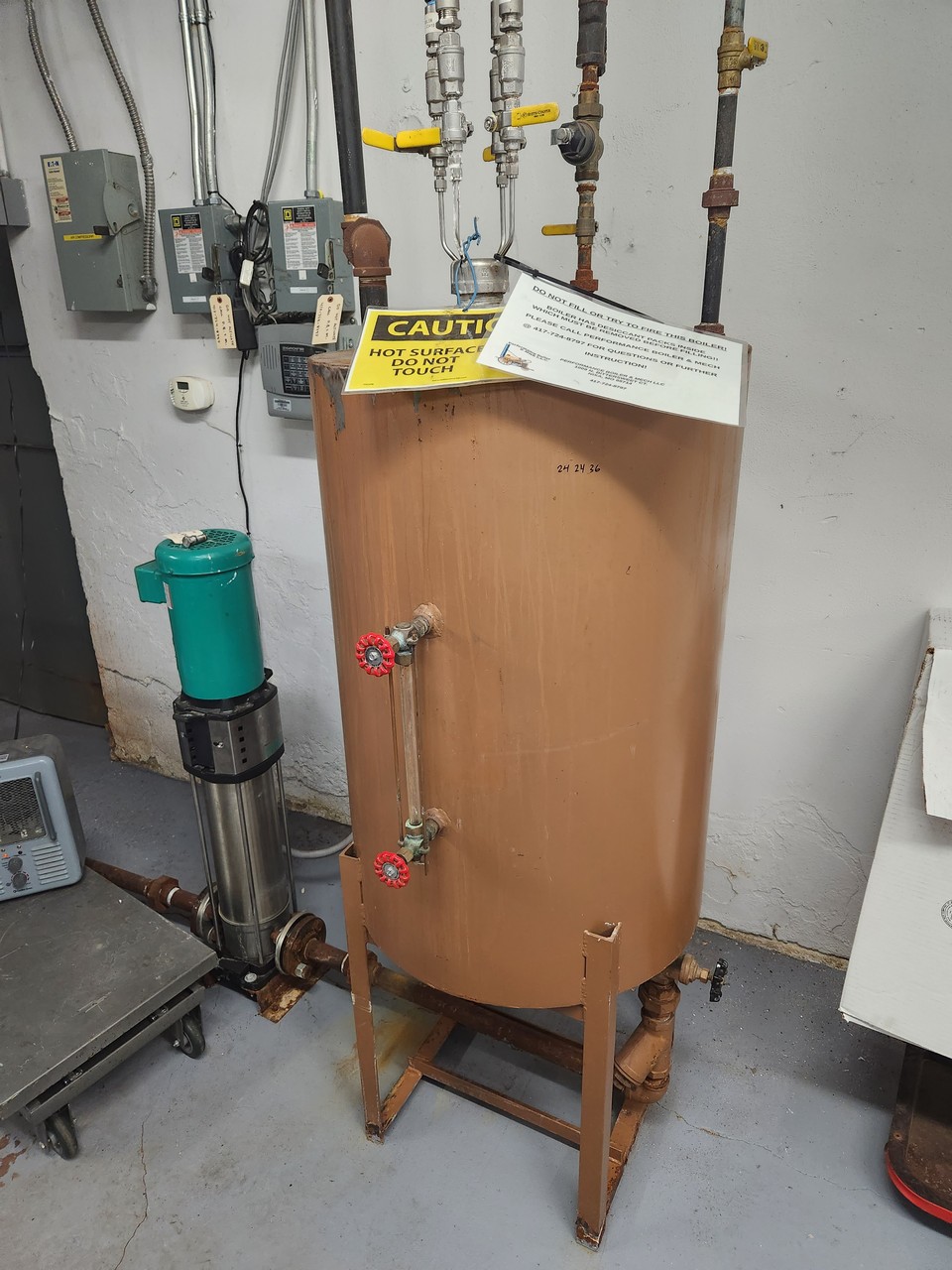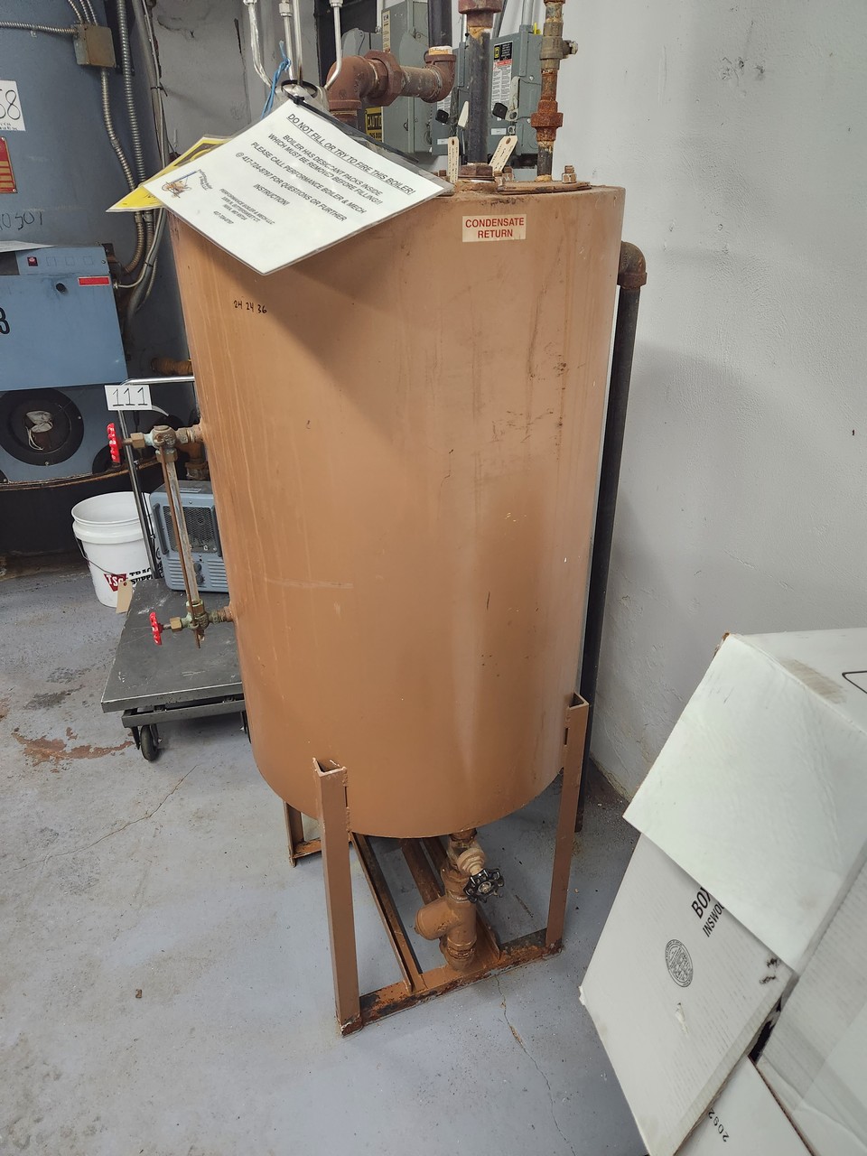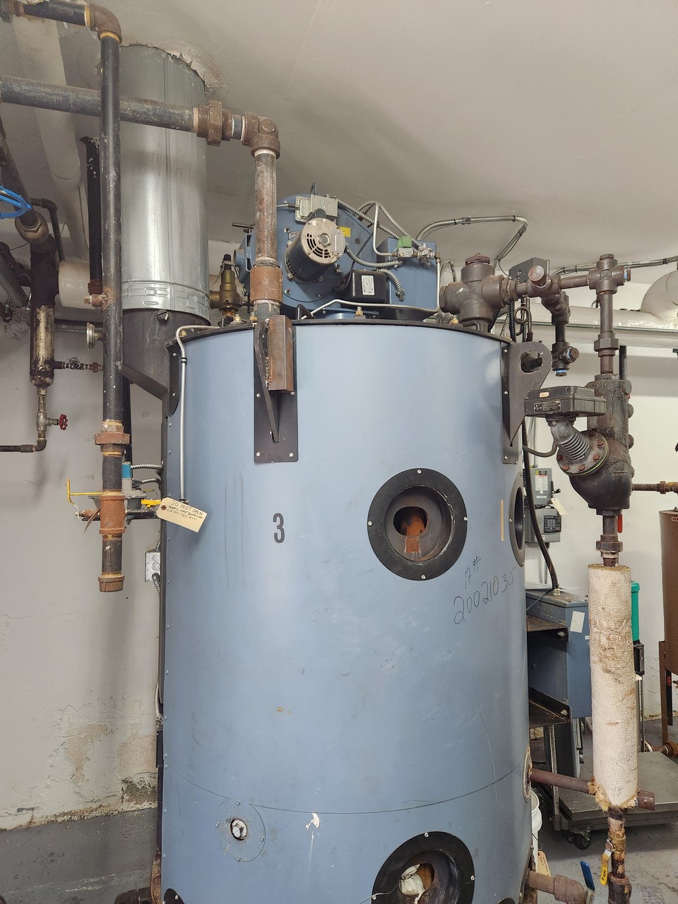 Williams & Davis 2050V-150S-02 Boiler System Tubeless, Gas Fired, 2,100,000 BTU Input, Estimated 48 In. x 48 In. x 82 In. Primary Tank Size, Includes 24 In. x 24 In. x 36 In. Condensate Tank with 3HP Helix Pump; s/n: 10429; (2015)