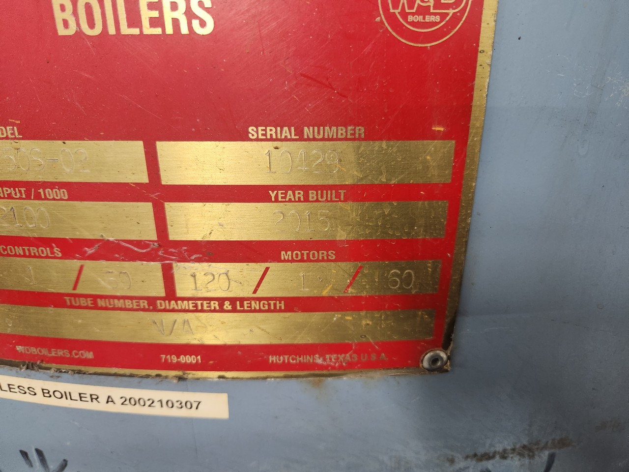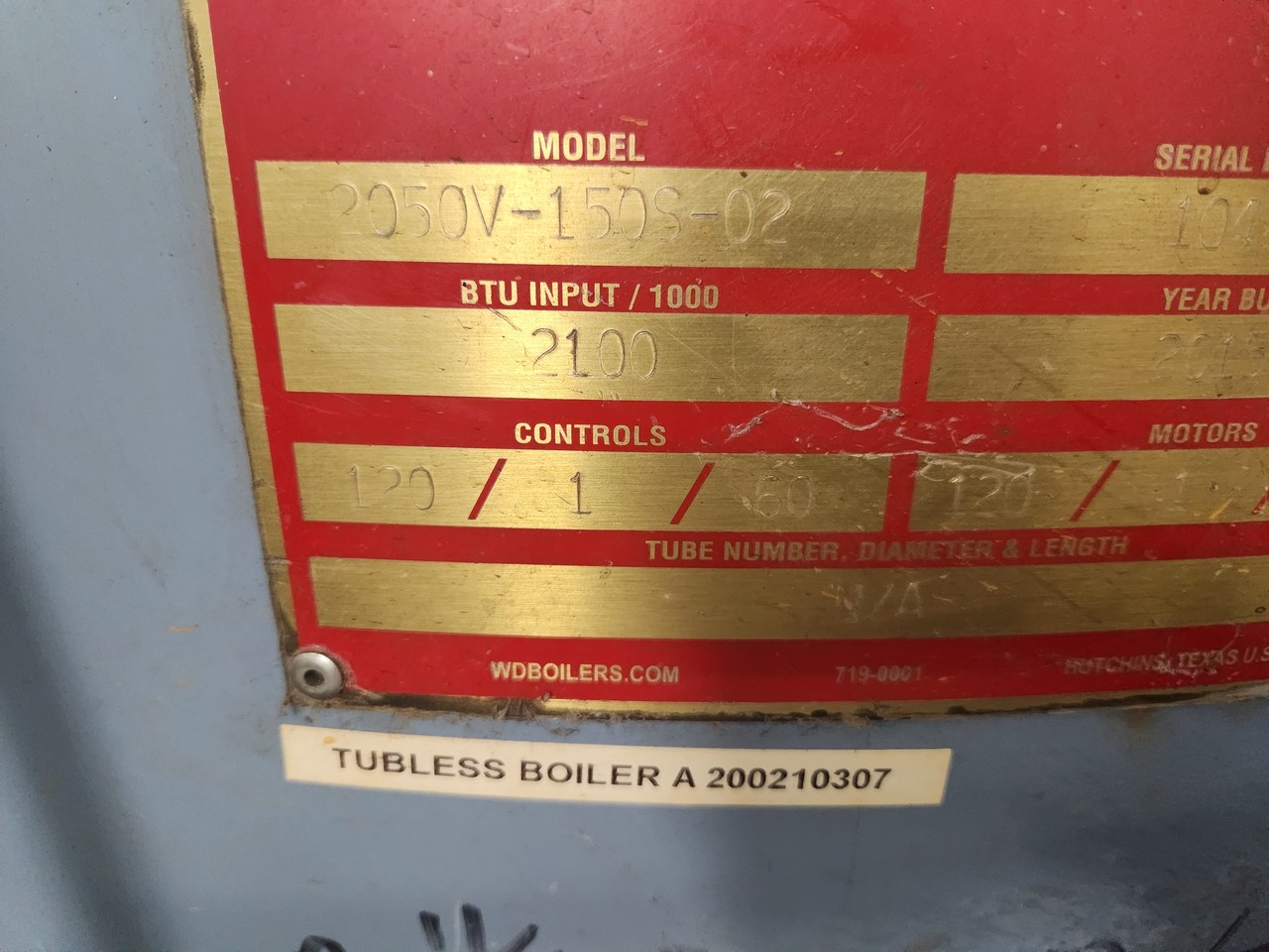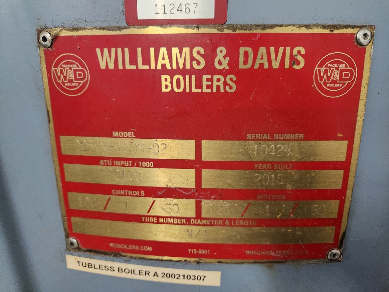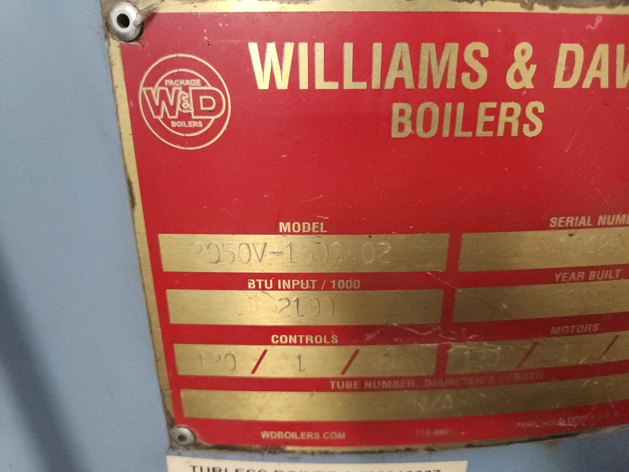 Williams & Davis 2050V-150S-02 Boiler System Tubeless