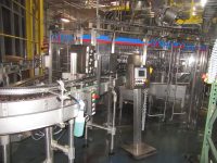 Complete Glass Bottle Filling and Packaging Line Including Pearson Automatic Hot Glue Case Erector with a Nordson Pro Blue 10 Hot Glue Unit, Side Mounted Electrical Enclosure with Allen Bradley Panelview Plus 700 Color Touch Screen Operator Controller. 35 ft L, 180 Degree, Carbon Steel, Power Roller Conveyor. Sentry Basket Erector Inserter Including Magazine Infeed, Vacuum Erector, 2-Lane Erecter, Connecting Transport Conveyors, Robotic Pick and Place Station, Full Length Plexiglas Safety Panels, Side Mounted Double Door Electrical Enclosure with Allen Bradley Panelview Plus 1000 Color Touch Screen Operator Controller. Sentry Glass Bulk Depalletizer Including 8 ft Infeed Conveyor with Right Angle, 8 ft Power Roller Infeed, Right Angle Discharge, 15 ft Triple Chain, Double High Infeed, Empty Pallet Bin, Elevator, Operator Platform with Stainless Steel Decking and Stair Access and Safety Guardrails, Vacuum Slip Sheet Remover with Slip Sheet Bin, Arm Mounted Upper Level Allen Bradley Panelview Plus 1000 Color Touch Screen Operator Controller, 15 ft Discharge Conveyor 48 in Wide, KHS Stainless Steel Frame Serpentine Single Filing Conveyor System. Sentry Carbon Steel Dual Belt Lowerator Conveyor. KHS Stainless Steel Connecting Conveyors. KHS Model FSM/Vacuum Vacuum Skid Including Sihi 10 hp Vacuum Pump on Stainless Steel Skid with Electrical Enclosure, Valves, Meters, Etc. KHS 48-Head Rotary Glass Bottle Rinser, Filler, Capper Including Plexiglas Safety Panels, Rotary Rinser, 12 Head Rotary Crowner, Remote Allen Bradley Panelview 700 Color Touch Screen Operator Controller on Pedestal Stand, Vacuum Max Crown Hopper and Transport System. Filtec Model FT50 Gamma Fill Height Detector Including Reject Conveyor Lane, Remote Pedestal Stand with Remote Operator Controller. Sentry Stainless Steel, 5 ft x 11 ft, Accumulation Conveyor with Poly Belting. Air Power Blower on Stainless Steel Stand with (2) 30 in Stainless Steel Conveyor Mounted Air Knives. Krones Solomatic Revolution Single Aggregate Rotary Labeler. Lynx Model SL302 Laser Coder Including Bofa Fume Extractor. Filtec Model FT50 Stainless Steel Inspection Unit. KHS Stainless Steel Accumulation and Connecting Conveyor. Miscellaneous Carbon Steel, Serpentine, Power Roller Conveyors From Inserter to Drop Case Packer. Standard Knapp Model 939S Versatron Stainless Steel Drop Case Packer, Top Mounted Accumulating Conveyor with Stainless Steel Laners and Allen Bradley Panelview Plus 1000, Arm Mounted Color Touch Screen Operator Controller. Hamrick Model 130CSTD Automatic Hot Glue, Case Top Sealer Including Dual AP Link Ink Jet Coders, Nordson Problue 7 Hot Glue Unit and Flap Closer. 6-Step Aluminum Crossover. Miscellaneous, Carbon Steel Power Roller Conveyors from Drop Case to Palletizer. Top Tier Enclosed Single High, Palletizer Including Empty Pallet Bin, Rotary Turn Table, Power Roller Discharge, Pallet Stretch Wrapper, plus an Allen Bradley Panelview Plus 600 Color Touch Screen Operator Controller.